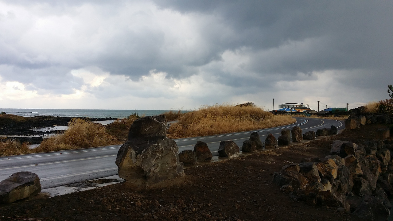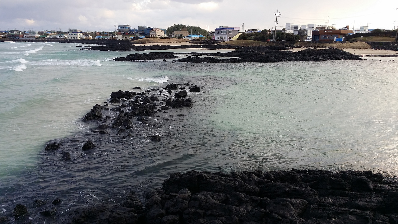 그 반가움을 뒤로하고 구부러진 길과 남의 담벼락을 헤맨 지 수차례 결국 나름대로 큰 마을이 앞에 나왔다. 세화에 도달했다. 오일장이 열리는 곳이 이 앞이다. 여기서 벨롱장이 열리겠구나. 이제야 어딘지 이해가 간다. 세화 해변에 도착하기까지 워낙에 바람과 비가 몰아치니 제대로 앉아 쉬어보지도 못했다. 솔직히 쉴만한 공간도 없다. 세화 해변의 몇몇 카페는 약간 명의 손님을 맞은채 그들의 담소 모습을 지나는 이의 눈에 비추어준다. 저들은 비 오는 날의 바다를 바라보며 무슨 생각들을 하고 있을까. 아마도 이같이 변덕 심한 날씨에 중무장을 하고 하염없이 걷고 있는 내 모습을 화제로 떠올렸을지도 모른다. 궁상을 떨고 있다고. 내가 그들을 관찰하듯 그들도 나를 관찰하지 않았을까.