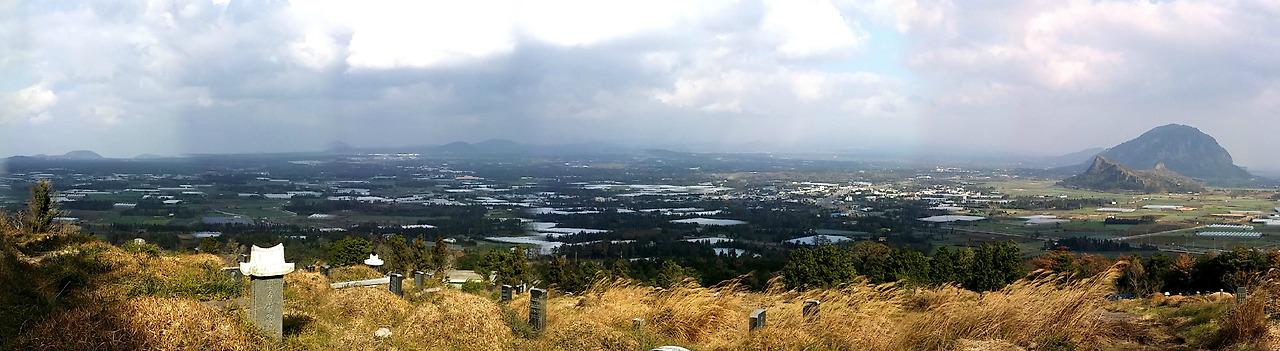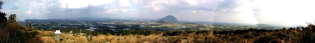 산방산의 뒷모습은 삶과 죽음의 경계를 넘나드는 모습니다. 모슬봉의 공동묘지에서 보이는 산방산의 뒷모습은 화려함과 먼 환상의 세계 뒤편에 있는 죽음과 또 다른 삶의 모습을 보여주는 느낌이다.