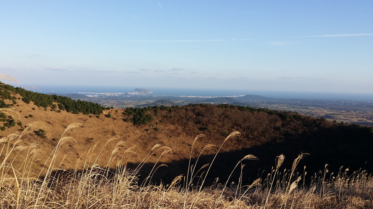 제주의 오름은 특이한 구석이 있다. 주변의 풍광을 한눈에 다 볼 수 있다