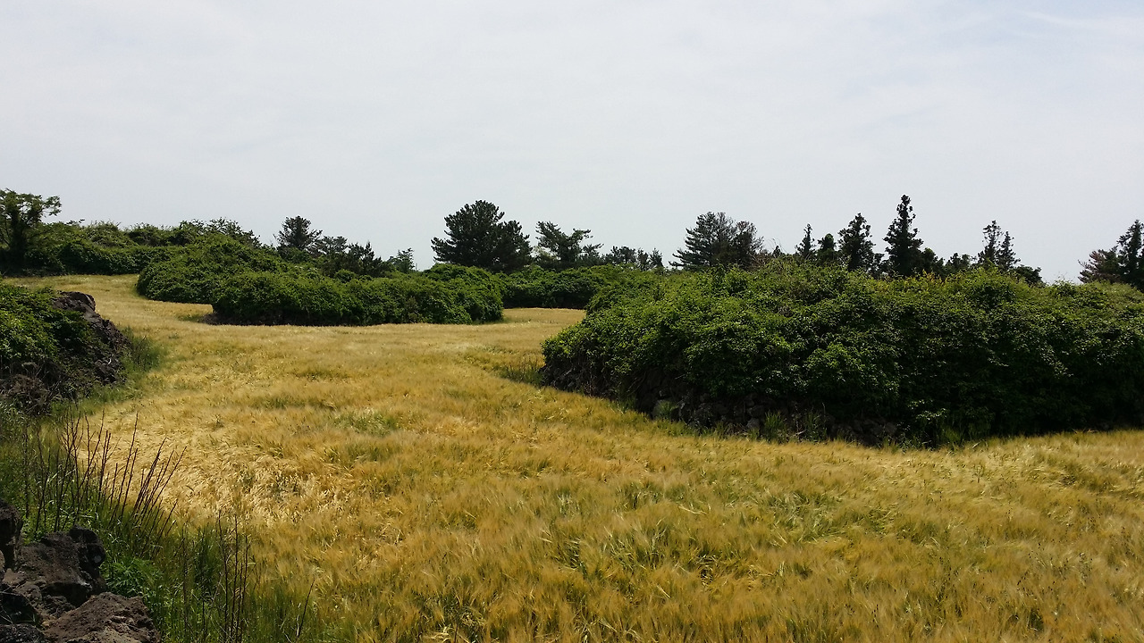 갑자기 다도해 섬들이 점점이 흩어져 있다는 착각을 들게 한다. 아주 보기 드문 경험이다. 마치 저 녀석들 사이에 곧 풀로 은폐한 누군가가 뚜껑을 열고 머리를 쑥 하니 내보낼 것 같다. 아마도 아직은 감성의 끈을 놓고 있지 않았다는안도감이 생긴다. 이 길 재미있다. 특히 이 바위가 있는 자리는 보리밭 사이를 스치고 움직이는 바위라는 생각과 환상이 닫히지를 않는다.