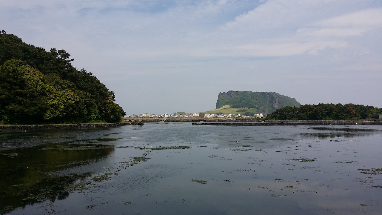 한참 안쪽으로 들어와 만을 따라 걷는 길은 나무로 데크를 만들어 산책을 위한 잘 준비된 길을 만들어 놓았다. 멀리 일출봉을 배경으로 바다와 함께 잔잔하게 어우러지는 분위기가 갑자기 나의 선입견이 얼마나 어리석었는지를 깨닫게 해준다. 사람은 결코 상황에 대해 예단을 하면 안 된다. 있는 현실을 겸허하게 받아들이고 그것을 찬찬히 살펴보면 얼마나 세심한 곳에 기쁨과 좋은 점이 있는지를 잘 알면서도 늘 내 멋대로 평가하고 섣부른 결론을 내리는 경우가 많다.