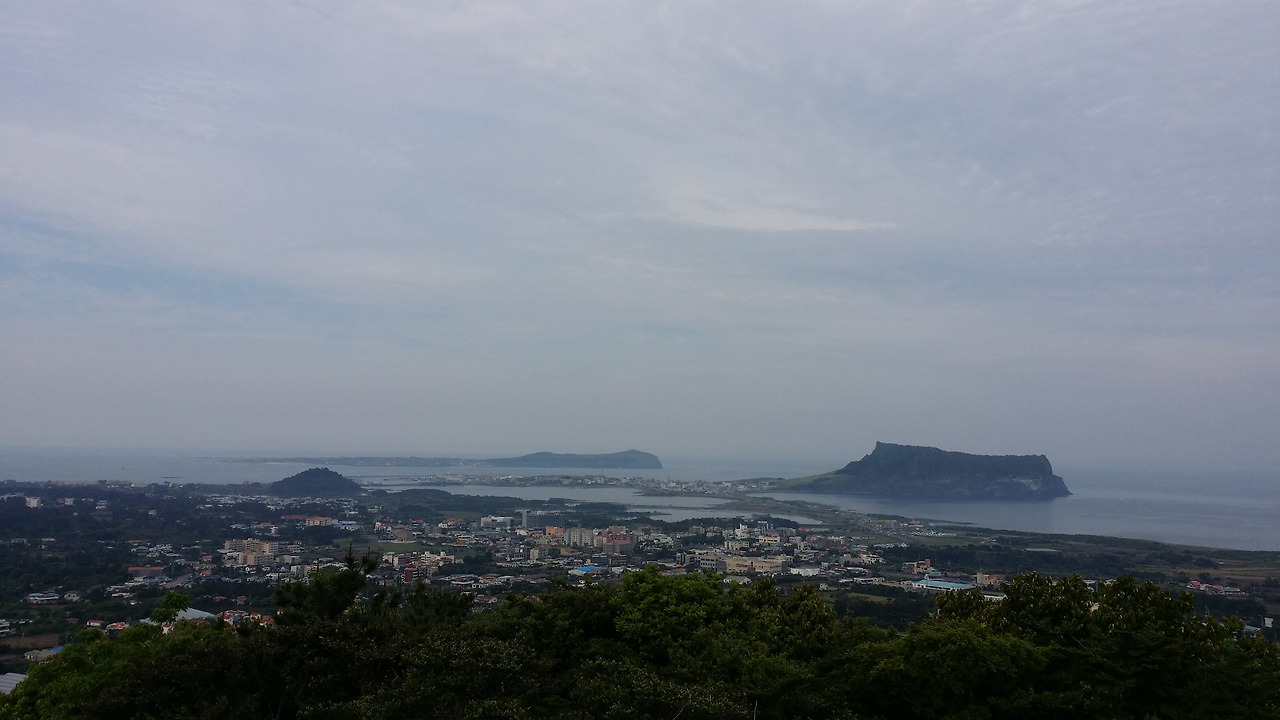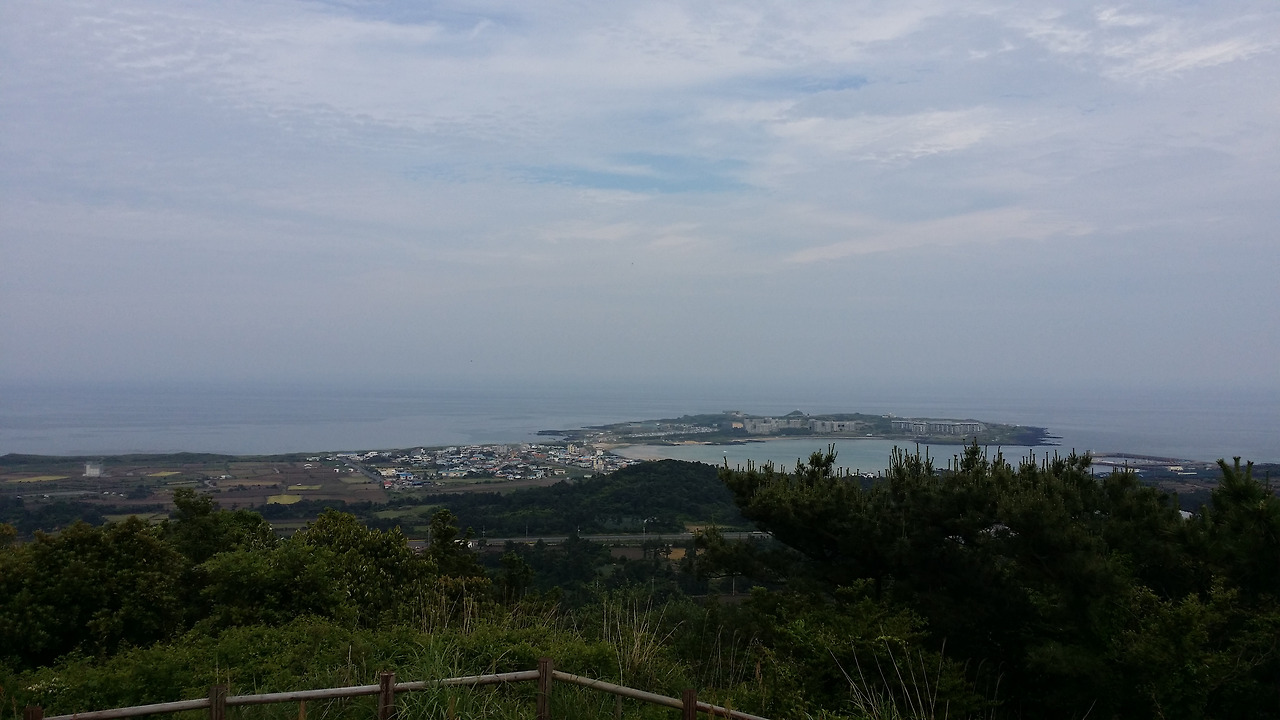 이제 대수산봉의 설명에서 나온 대로 섭지코지를 비롯해 멀리 광치기 해변과 일출봉을 한눈에 바라보면서 한참의 시간을 보냈다. 간식이랄 것도 없이 초코바 하나를 먹었다. 신기하게 배가 고프지 않다. 물만 자꾸 들이켠다.