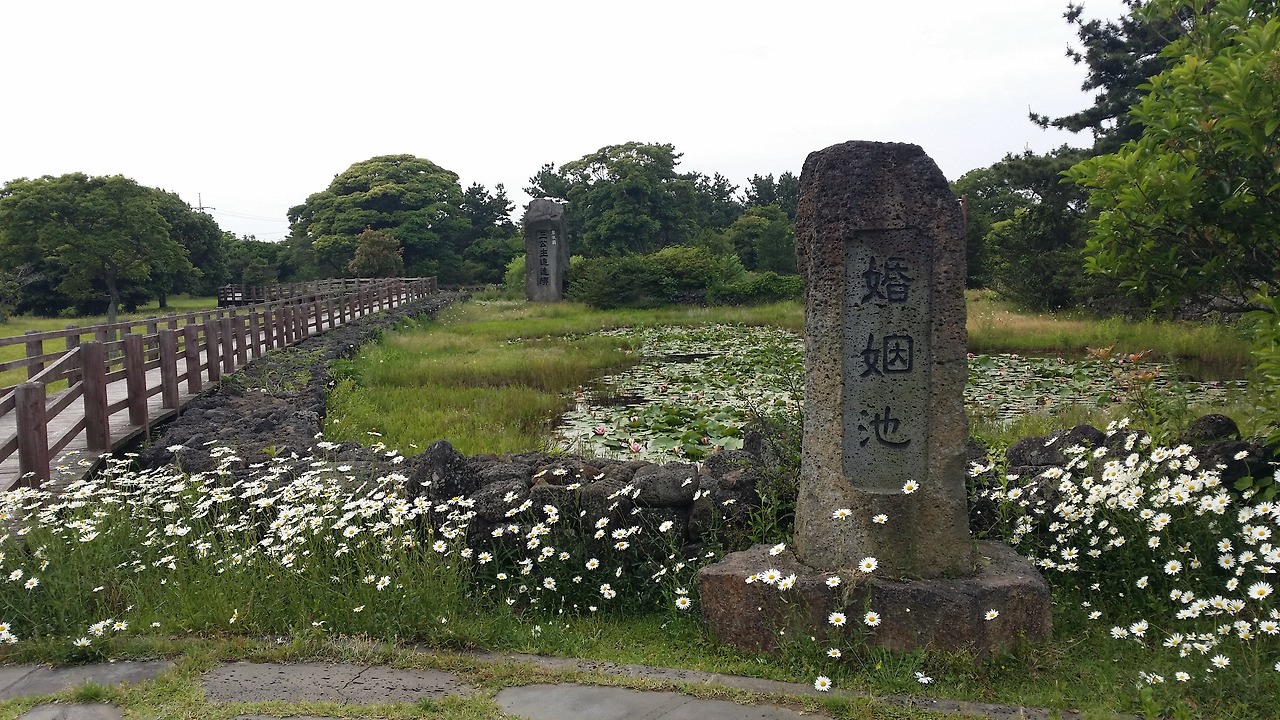 꽃이 흐드러지게 피었다는 건 이런 의미가 아닐까 싶다. 들국화를 이렇게 많이 본 적이 있던가. 혼인지이기 때문에 이렇게 가꾸었겠지만 그래도 보기에 좋다. 괜스레 젊은 시절을 되새기게 하는 설렘이라고나 할까. 좋은 제주의 날씨와 분위기가 너무 좋아 오히려 슬프기까지 한 계절이다.