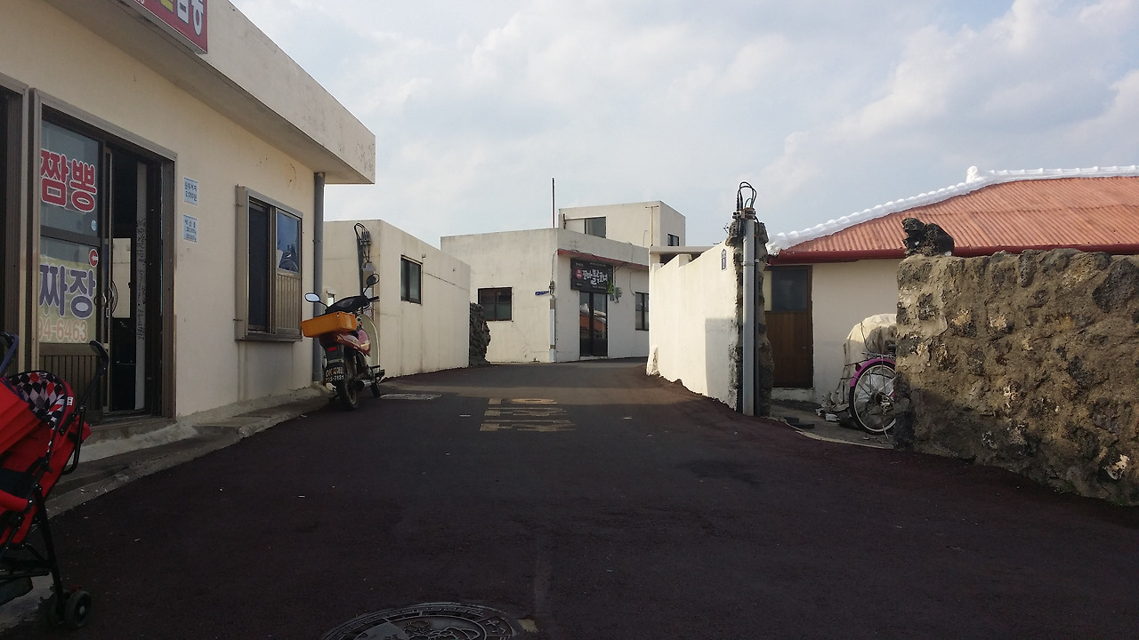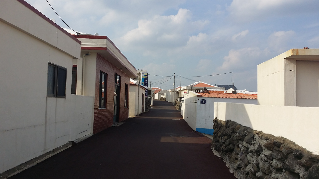 다시 길은 섬을 가로질러 반대편의 해안도로로 나를 이끈다. 그곳에 다달으니 많은 이들이 자전거를 타고 지나고 있다. 해녀 한분이 등짐에 무언가를 잔뜩 지고 바다에서 나오고 계신다. 한 자루 가득인 걸 보니 뭔지는 몰라도 꽤 많은 것들에 대한 수확이 이루어진 모양이다. 아마도 전복이나 소라 등등이 포함되어 있겠지... 저 물건들은 어촌계에서 구매해 어디로 팔려가려나... 궁금하지만 물어볼만한 게재는 아니기에 멀직히 해녀 할머니를 보며 밋밋한 해안도로를 향해 걷는다.
