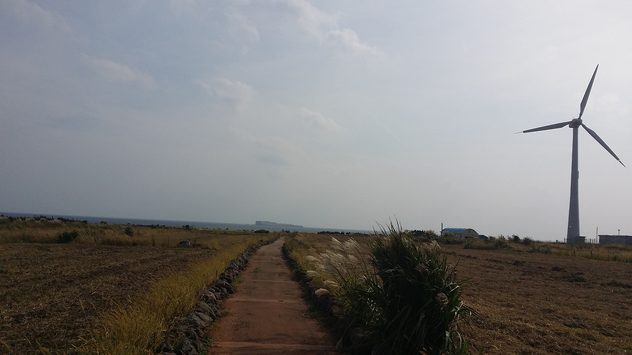 순간순간 밭에 심어둔 콩과 억새가 눈에 들어오고 그 너머로 풍력발전기의 블레이드가 들어오는 게 영락없는 나우시카 마을이다. 이곳은 전기에너지만으로 다 사용할 수 있도록 한다는 제주도의 계획이 머릿속에 떠올랐다. 하지만 지금 전기가 자급자족이 된다는 것인지 되게 하겠다는 것인지 정확히 기억은 나지 않는다.