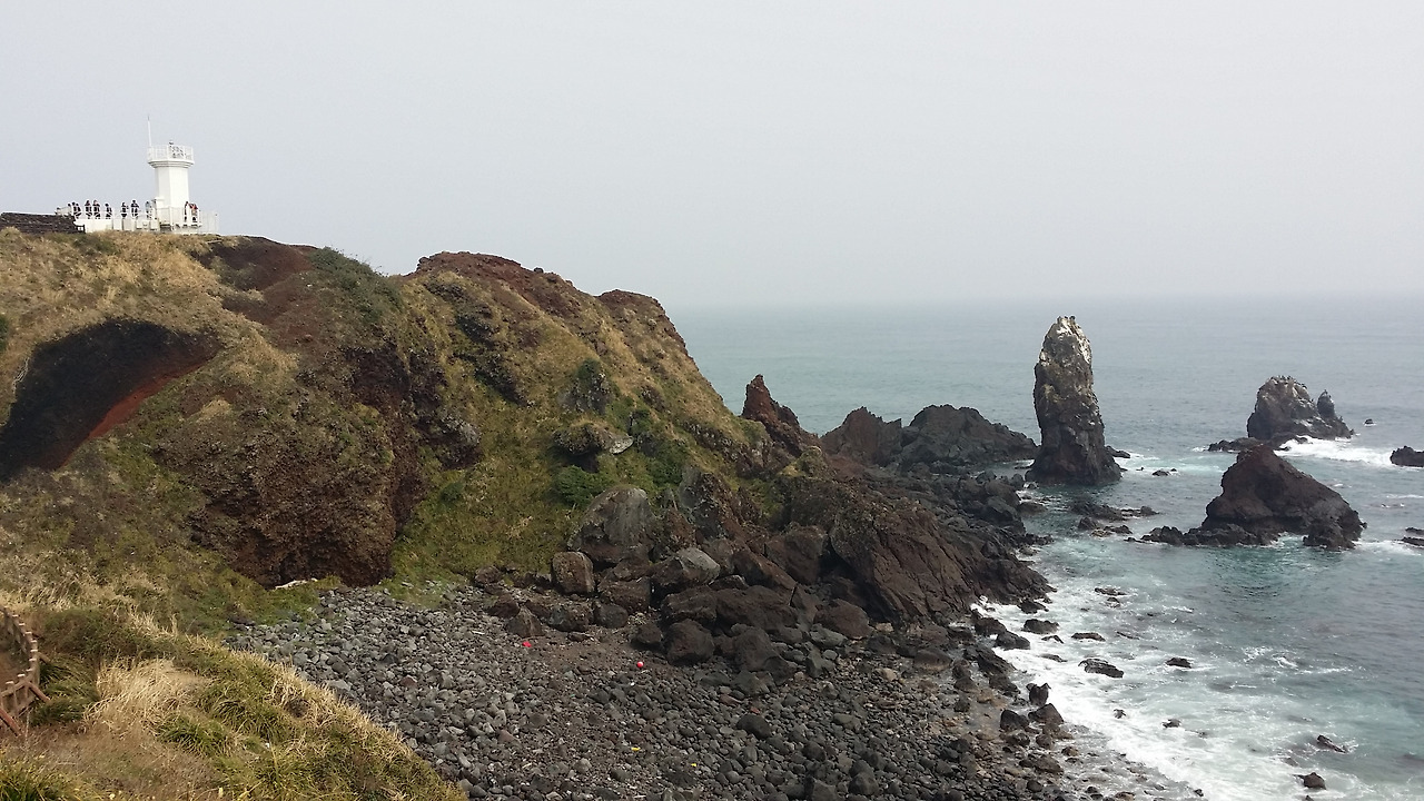 지난주에 이어 2주 연속 찾은 섭지코지는 신선함보다는 밋밋함을 주는 듯했다. 경치는 물론이거니와 온통 중국 관광객들로 가득 찬 섭지코지를 딱히 비 오는 주말에 가야 할 이유는 없었다. 집사람이 제대로 가보지 못했던 곳이라는 이유로 다시 목적지로 삼았다. 피닉스 아일랜드 주차장에서부터 한참을 올라가는 수고로움을 덜고 한화 아쿠아리움 쪽으로 돌아 해안가에서부터 올라가는 뒷길도 알아뒀으니 동네 사람인 듯 자랑질도 할 겸 이곳을 찾았다.