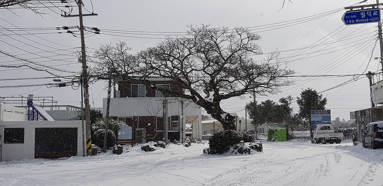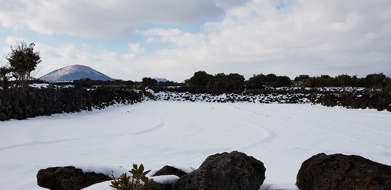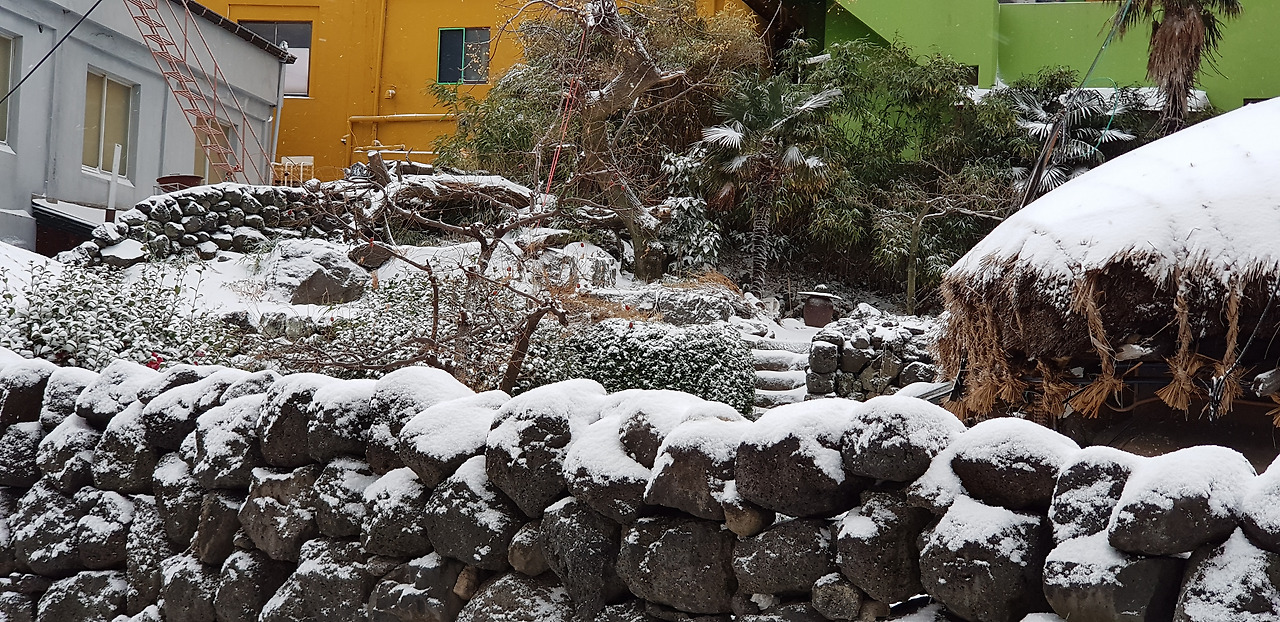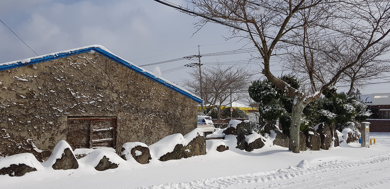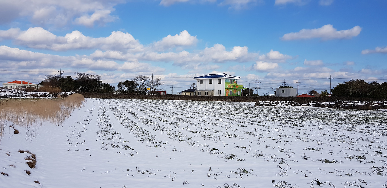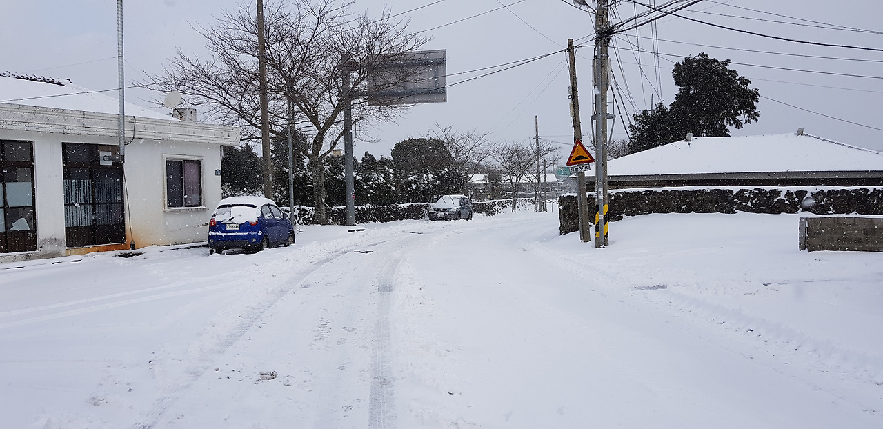 눈으로 가려진 제주 농촌의 풍경을 가능하면 더 많이 많이 기억에 담으며 겨울 하루를 시작한다