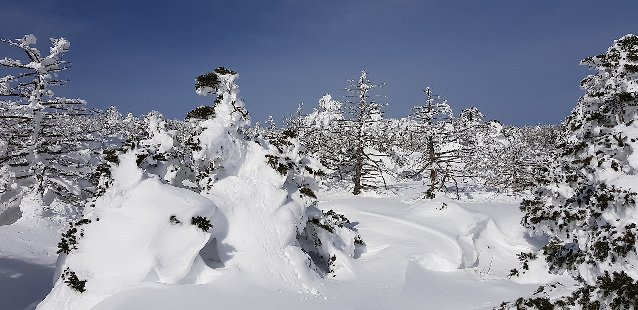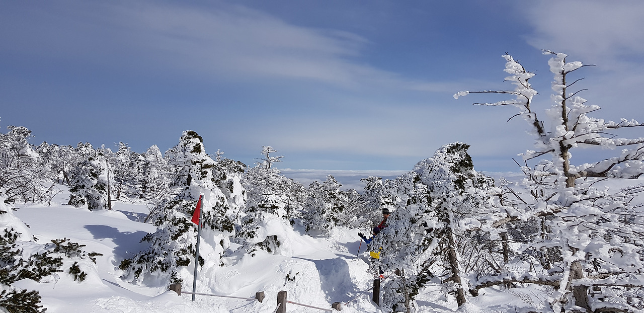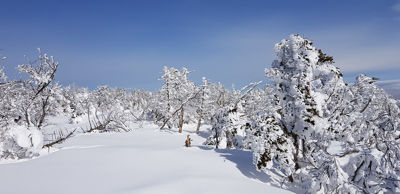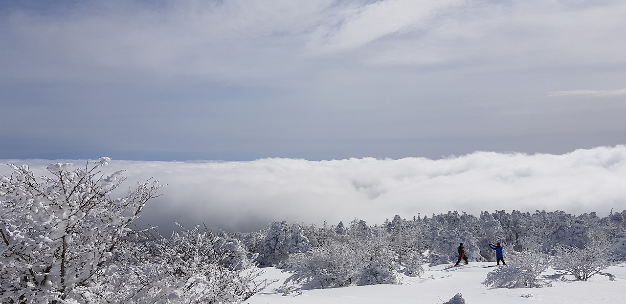 공교롭게도 아침의 그 빽빽한 눈밭이 급격하게 녹아내리며 나뭇가지가 강하게 인상을 드러낸다. 물론 일부 지역이지만 말이다. 오전에 오르지 못했으면 그 같은 풍경을 다시 경험하지 못했으리라.