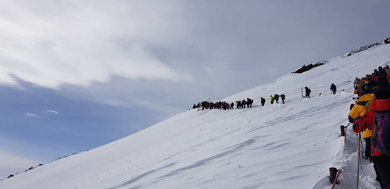 못내 안 떨어지는 발걸음을 뒤로한 채 하산길을 택하려 하니 왜 이리 아쉬운지. 괜히 이곳저곳 둘러본 곳을 한 번 더 둘러보고는 눈 딱 감고 하산을 택했다. 저 멀리서 여전히 줄을 서서 오르는 등산객들의 모습이 이어져 있다. 그들은 눈에는 내가 부러울까 아니면 방해자일까. 많은 사람들이 올라오던 줄이 한참을 내려오니 끊겼다. 더 이상 입산통제로 사람들이 오르지 않는다. 간간히 몇몇 팀들만이 정상을 향하며 천천히 발걸음을 옮긴다. 이제부터는 하산길인데 넘어지지 않으려는 노력과 다리가 풀리지 않기를 기대할 뿐이다.