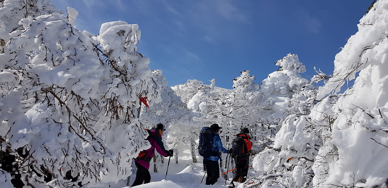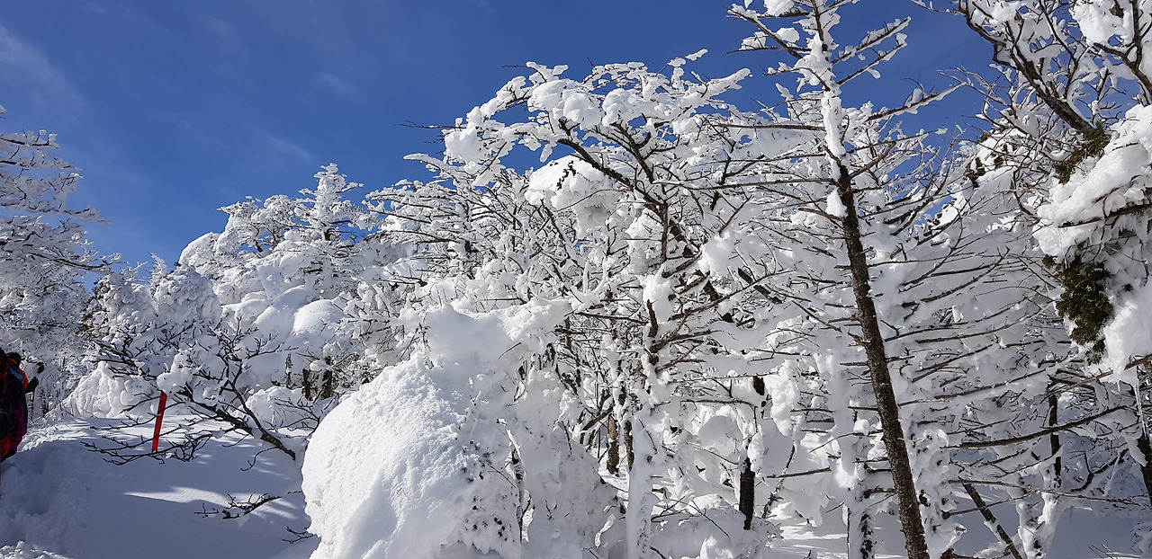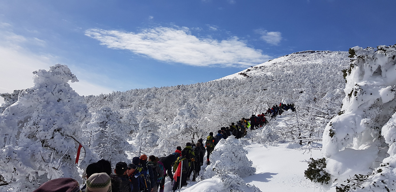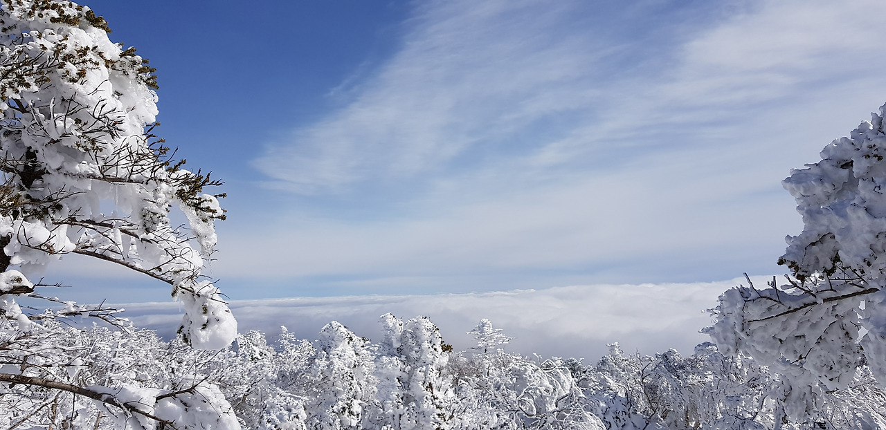 산행길이 이렇게 쾌적해도 괜찮은지 물어보고 싶다. 모든 조건이 너무 좋은 편이다. 눈은 그대로 쌓여있고 날씨는 영상이다. 바람도 없고 하늘은 맑고 푸르르다. 추위를 느낄 겨를이 없다. 보는 것이 믿는 것일 수밖에 없는 환상의 겨울산을 두고 천천히 길을 간다.