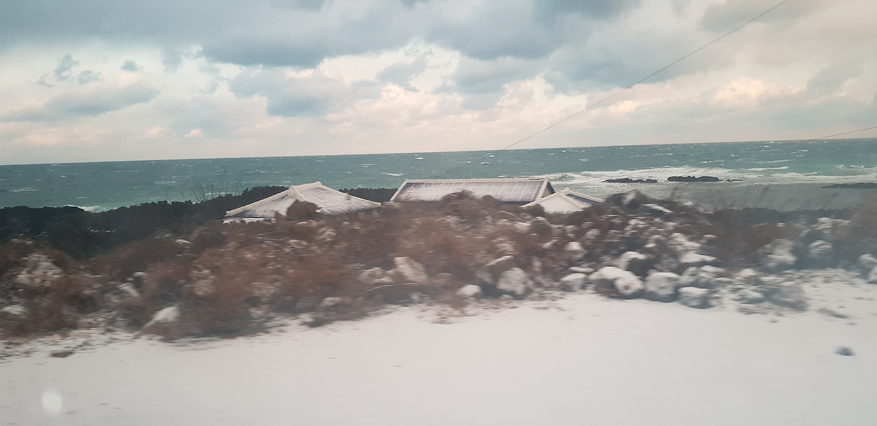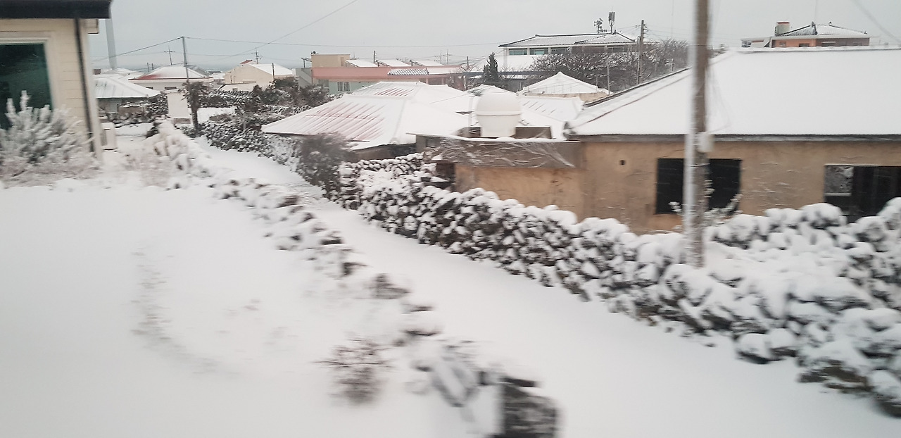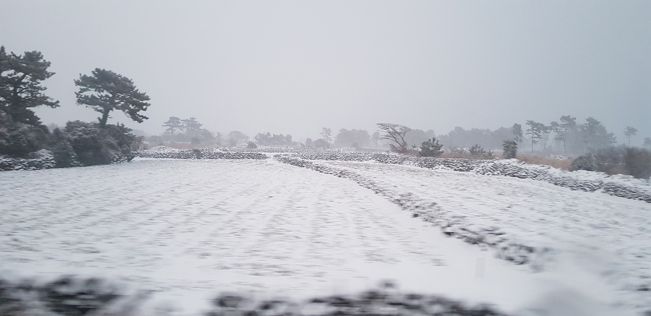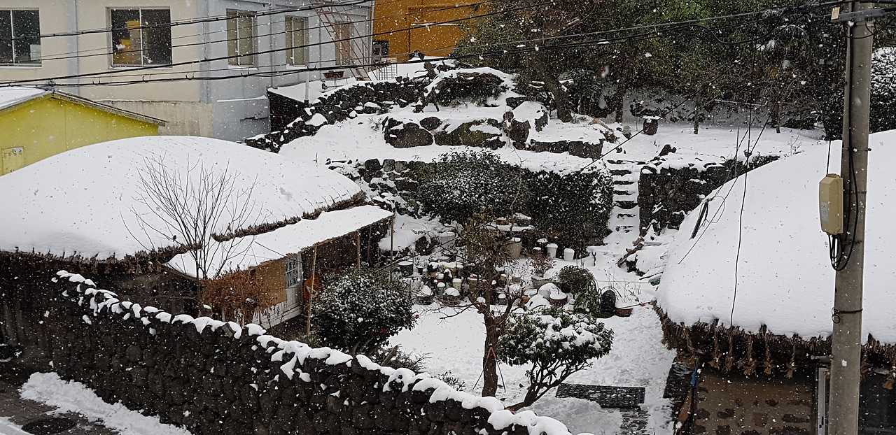 제주의 시내가 아니라 농촌지역에서 사는 이유는 아날로그의 서툴면서도 정겨운 느낌을 주는 환경 때문이다. 그 안에서 나름 모던한 느낌이 동시에 살아있는 이중성의 묘한 격차가 살아있기에 좋은 것이리라. 단순히 깡촌이라고 느껴지는 시골지역이 아니다. 가장 현대적이고 첨단 문명과 멀어져 있지 않지만 여전히 그 문명의 범주안에 있으면서도 그리운 고향 같은 곳에서 사는 느낌. 버스에서 바라본 제주의 농촌에 내린 눈은 몇날 며칠을 내린 지겨움이 있었지만 여전히 정겨움이 훨씬 강하다.