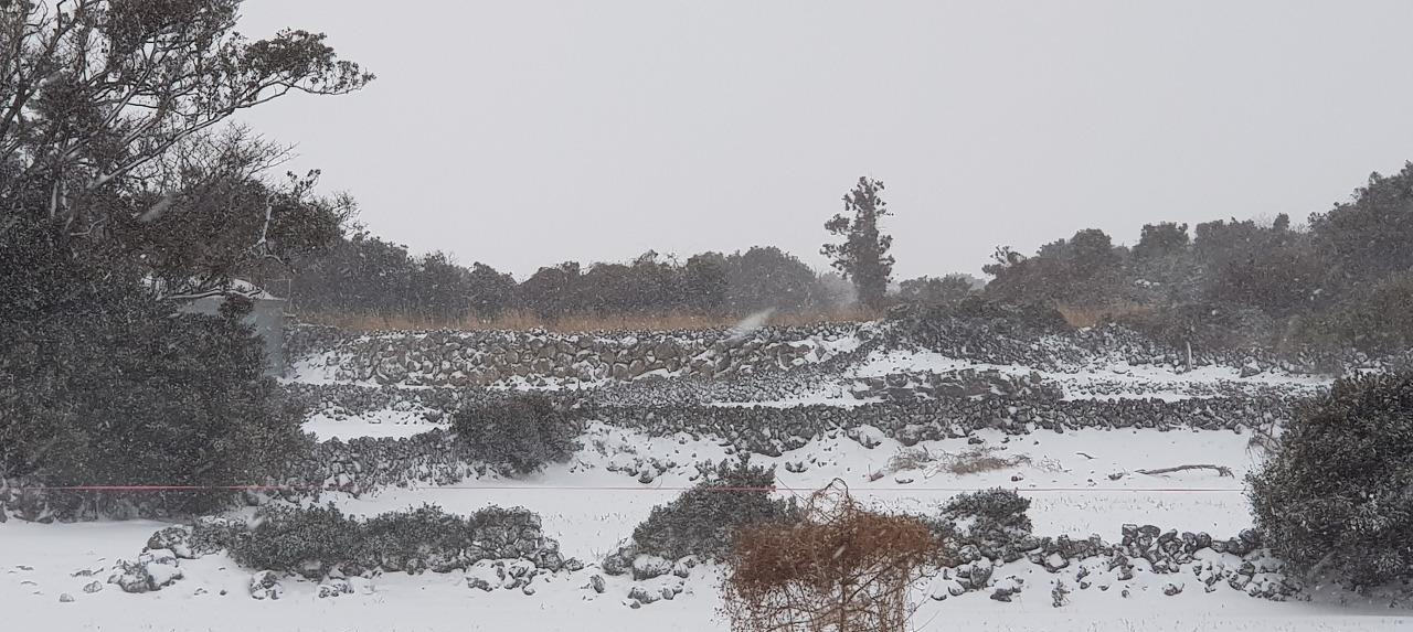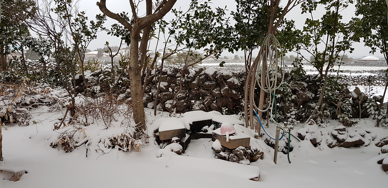 눈으로 덮인 밭담은 인연의 끝이 이어져 있음을 느끼게 할 뿐 나로 하여금 무엇하나 긴장할 일 없게 만든다. 여전히 마음은 무언가 연결시키려는 불순한 의도만 남아 있으니 눈을 탓할 일이 아니다.