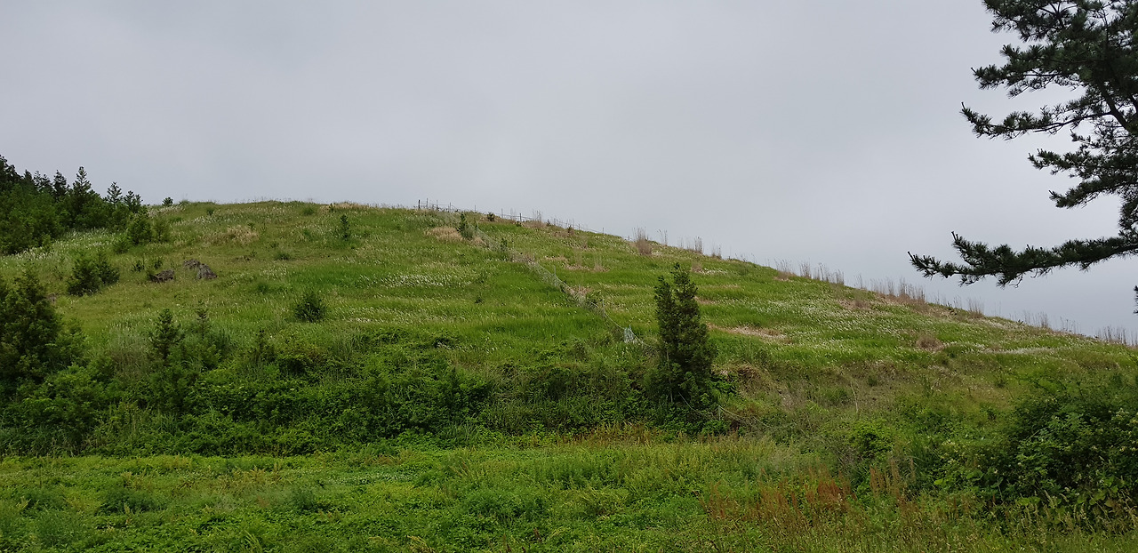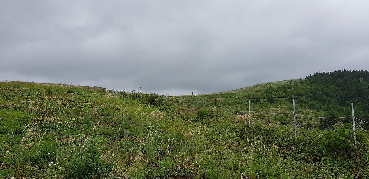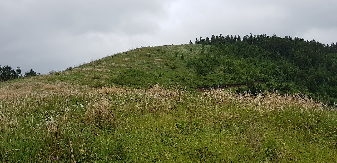 오르기 가장 완만한 장소 앞으로 밭이 가로막고 있다. 최근에 밭을 갈아놓았는지 흙이 고르게 퍼져 있다. 그곳을 지나면 완만한 경사와 초원의 풀들이 지속된다. 그 받대쪽으로 일부 숲이 보인다. 그게 전부다. 걸어서 10분이 채 안 걸릴듯한 분위기다. 밭을 가로지르기로 했다. 다행히 밭으로 쓰기에 적당하지 않은 밭 사이의 넓은 길 같은 장소가 보인다. 고랑이라고 하기에는 꽤나 넓은 지역이라 그냥 방치된 땅과 흡사하다. 지대도 낮지만 커다란 돌이 잔뜩 놓여있어 밭으로는 영 아닌 땅이 오름의 입구까지 연결되어 있다. 다행이다. 남의 밭을 밟고 지나도 되지 않는다는 안도감이 찾아온다.