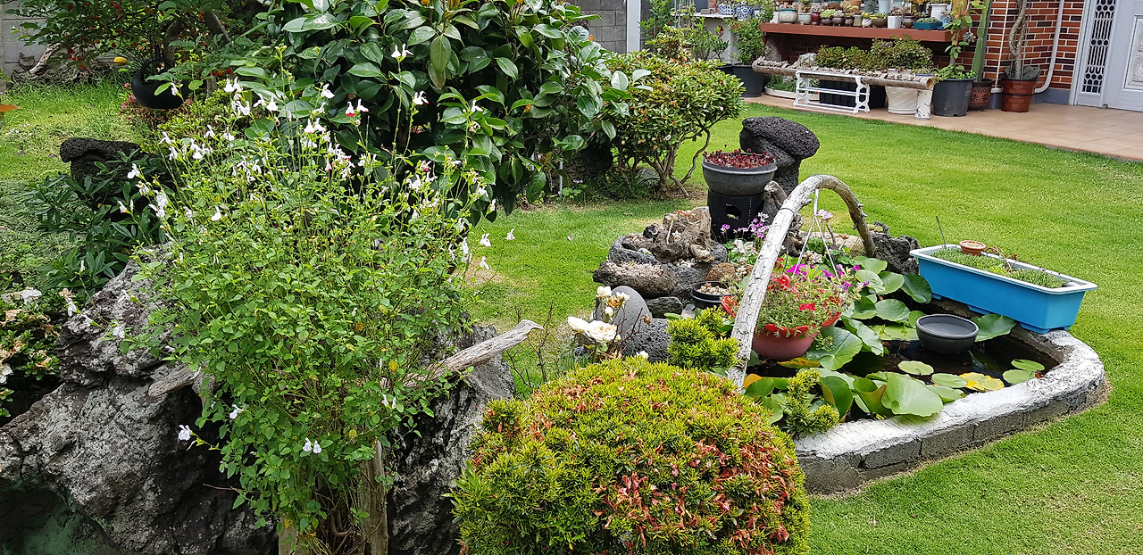 내려온 지 5년이 된 육지 출신의 부부가 정성스레 가꾸는 정원이다. 남들은 자라나는 풀과 잡초로 허덕이는데 그 어려운 정원을 정성과 관심으로 손질을 하고 있다. 대단한 노력의 결과물이다.