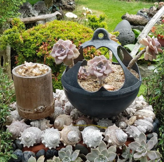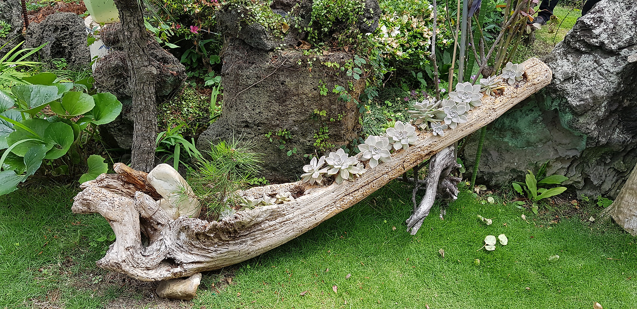 온 갖가지 다육이를 중심으로 다양한 형태의 화분과 앞마당 곳곳에 가득 채웠다. 보통의 정성으로는 만들 수 없는 풍경이다. 담장 위에 나무를 파내고 만든 화분과 돌 깊숙이 심어놓은 다육이에 눈길을 보이기 시작하니 들어와서 구경을 하란다.