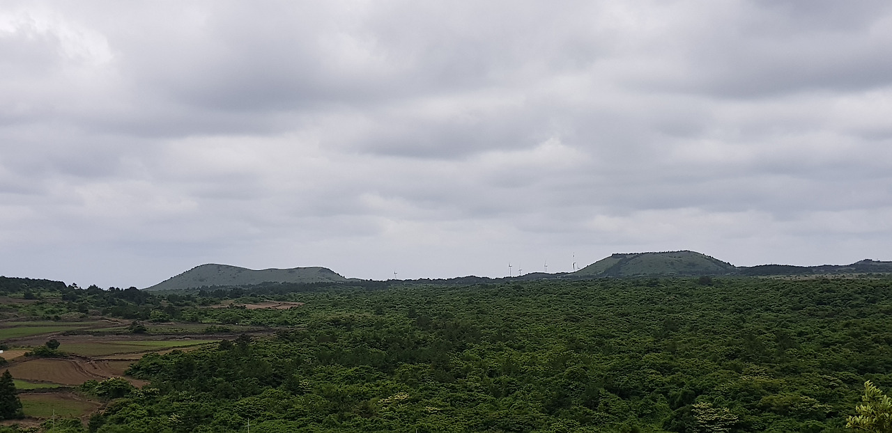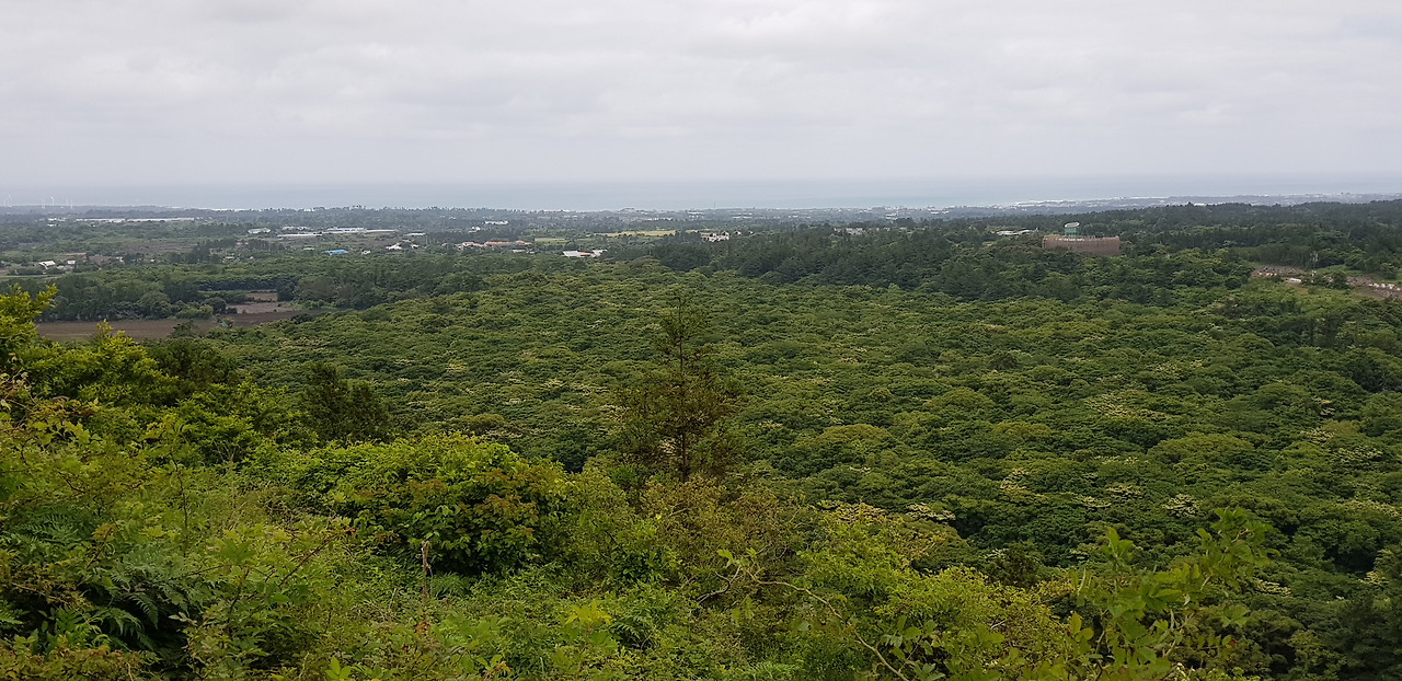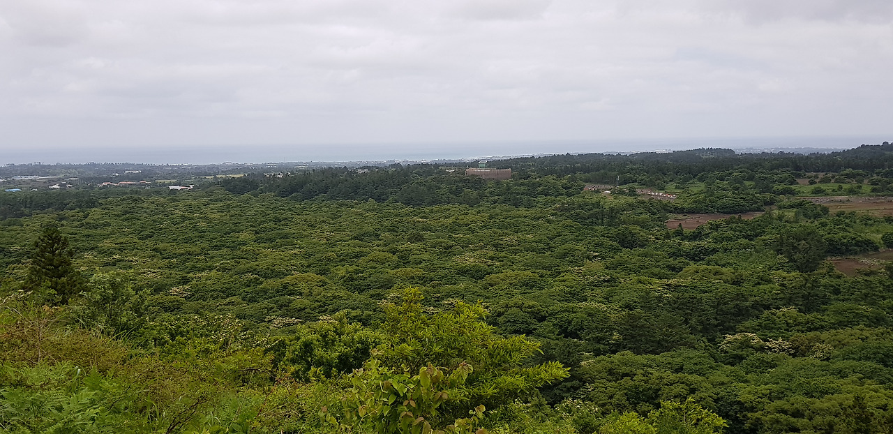 오르는 중간부터 뒤돌아봐도 보이는 풍경이 변할리 없건만 오르며 뒤돌아보고 또 오르고 뒤돌아보고 결국 정상에서까지 보이는 모습이라고는 비자림 반대편의 한라산 쪽 서쪽 오름군락 말고는 같은 풍경을 보고 또 보고... 오르페우스도 아니고 이게 뭐람...