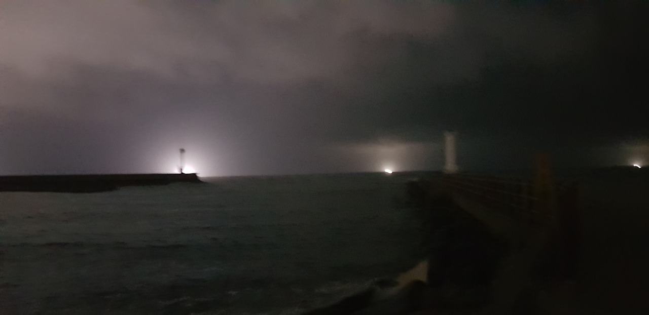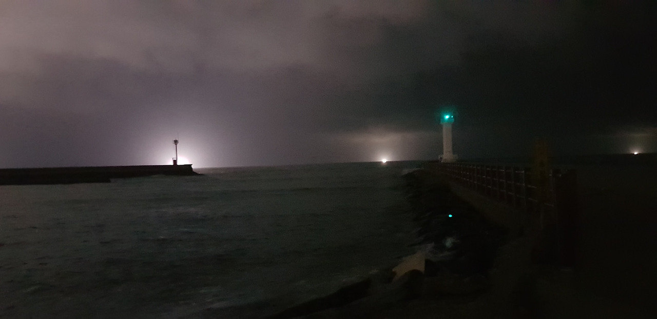 잔잔한 제주 밤바다는 그리움을 자아내기에 충분하다. 나를 부르듯 불빛 환히 비추고 그 너머의 무엇이 기다리듯 하다. 바다가 잔잔한 덕에 두려움이 줄어든다.