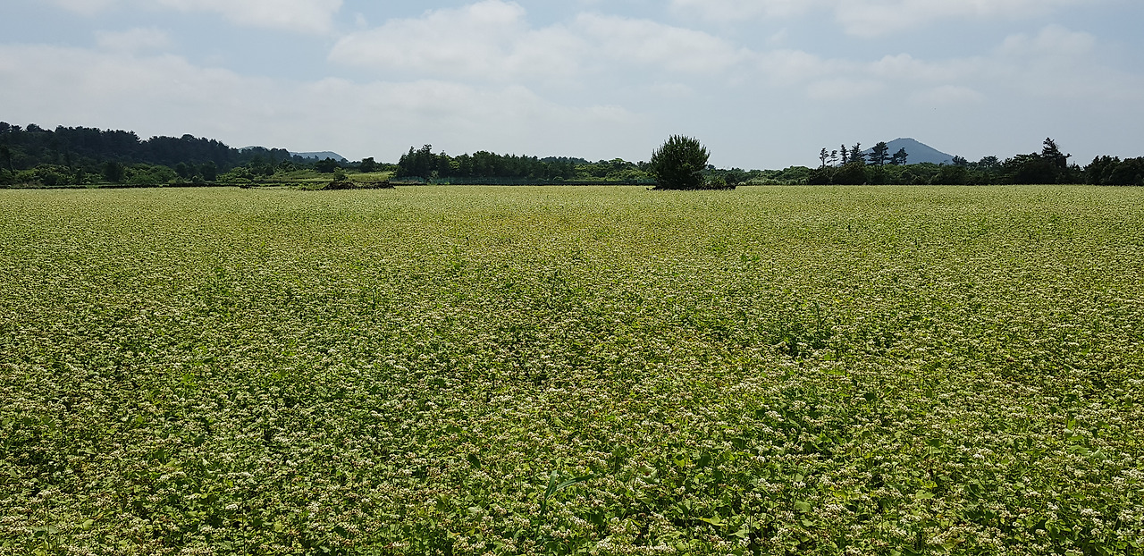 세화에서 송당으로 넘어가는 길. 송당 근처의 밭에 차들이 간간히 멈춰서있다. 압도할만하지는 못하지만 그래도 시선을 멈추기에는 충분한 모습이 보인다. 메밀밭. 아직 가을이 되기에는 먼 시간인데 벌써 끝물이다. 메밀 2 모작이 가능하다 하니 이런 이유 이리라. 암튼 곡식으로서 메밀보다 꽃밭의 메밀은 애잔함과 화려함을 함께 주는 꼭 들러야 할 장소이기도 하다.