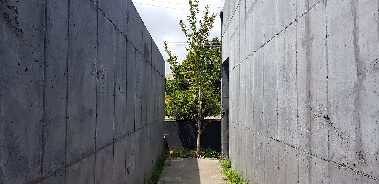 노출 콘크리트 공법이 이제는 너무나 당연하게 여겨진 때문인지 벽면의 거친 마무리는 어찌 보면 이것이 곧 자연이 아닐까 하는 뜻밖의 인과관계도 만들어 낸다. 그러나 사실이 그렇지 않다는 것은 금세 깨달을 수 있는 일이다.
