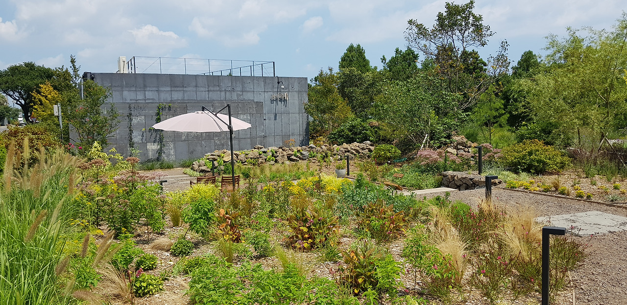 한 여름의 날씨는 무더위의 극으로 치닫고 있고 아직 조성 중인 정원을 둘러보는 마음에는 미완성의 느낌이 강하게 남아있다. 사실 오픈한 것도 얼마 되지도 않았으니 그도 그럴만하다는 생각이다.