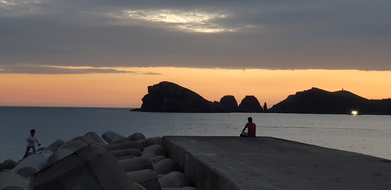 바다에 앉아 노을을 담고 있는 이는 누구인가