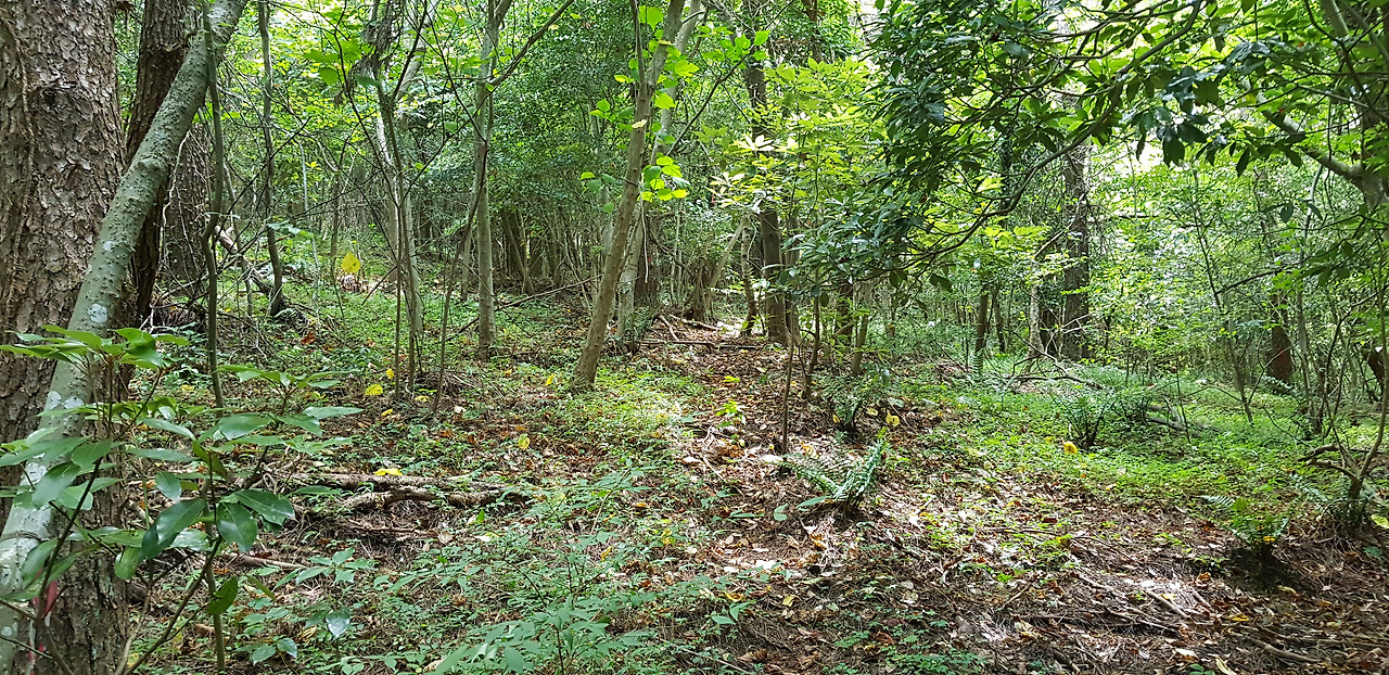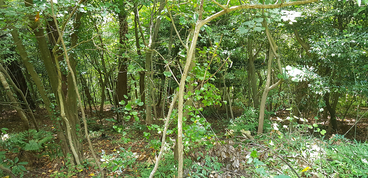 이윽고 한계가 왔다. 둘레로 이어진 길이 오름과 멀어지며 입구의 반대편 밭으로 이어진다. 이러다가는 반대편 숲 속 어딘가의 알 듯 모를듯한 입구로 나올 곳이다. 고민 끝에 발길을 돌린다. 분명 가파른 길로 오르는 갈림길이 있었던 기억과 그것을 애써 무시했던 기억이 있다. 길이 꺾이는 언저리쯤에서 오름 정상 쪽을 바라보니 숲이 우거져 있음에도 나무와 나무 사이가 큰 나무보다는 가는 잡목으로 흩어져 보인다. 언뜻 보면 등반로라고도 볼만한 자국이 나있다. 재선충병 검사하느라 이곳으로 올랐을 것이다. 이쯤에서 무작정 비탈을 치고 오르기로 한다. 이제 와서 후회해도 소용없다. 역시 고정된 등반로가 아닌 것은 확실하지만 등반로가 아니라고 해서 온갖 가시덤불이나 잡목으로 엉켜있어 앞으로 나가지 못할 만큼은 아니다. 그대로 올라간다. 비탈이 심해서인가 기분이 상해서인가 온몸에 피곤이 급격하게 밀려온다. 소용없다는 것을 알면서도 후회되고 짜증이 난다. 왜 이제 와서...