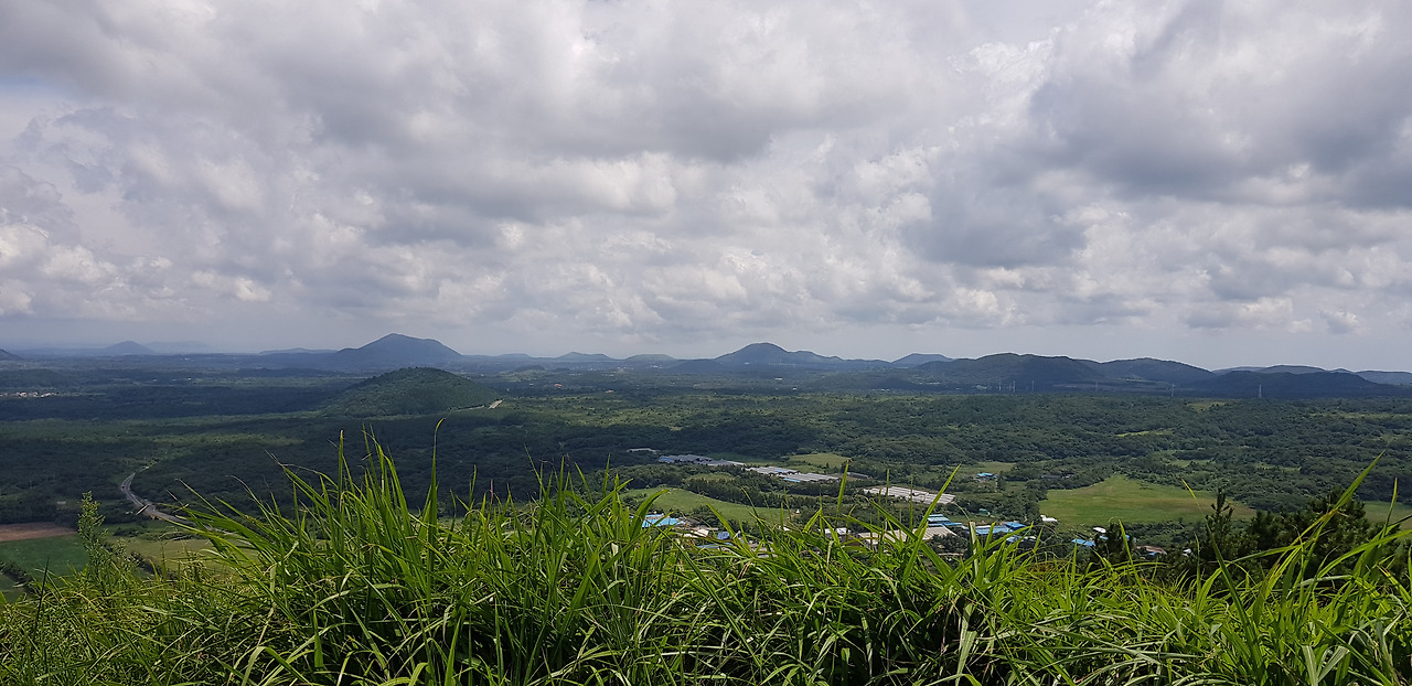 정상의 순간은 특히 조망이 트인 오름의 정상은 과정의 모든 어려움을 잊게 해준다. 이 오름의 정상도 마찬가지다. 특히나 그동안 구좌 오름 안에서 서로를 바라보는데 익숙했던 풍경이 새롭게 보인다. 이 오름은 거문오름 옆에 위치해 있어서인지 덕천과 김녕은 물론 송당과 성산까지의 오름들이 줄지어 눈앞에 서있다. 바로 코 앞의 북오름부터 멀리 외떨어져 있는 둔지오름을 비롯해 높은오름과 멀리 지미봉과 우도까지 동쪽의 오름 모두 모여 줄을 서 보시오라고 외치듯 모든 오름이 줄을 서고 있다.