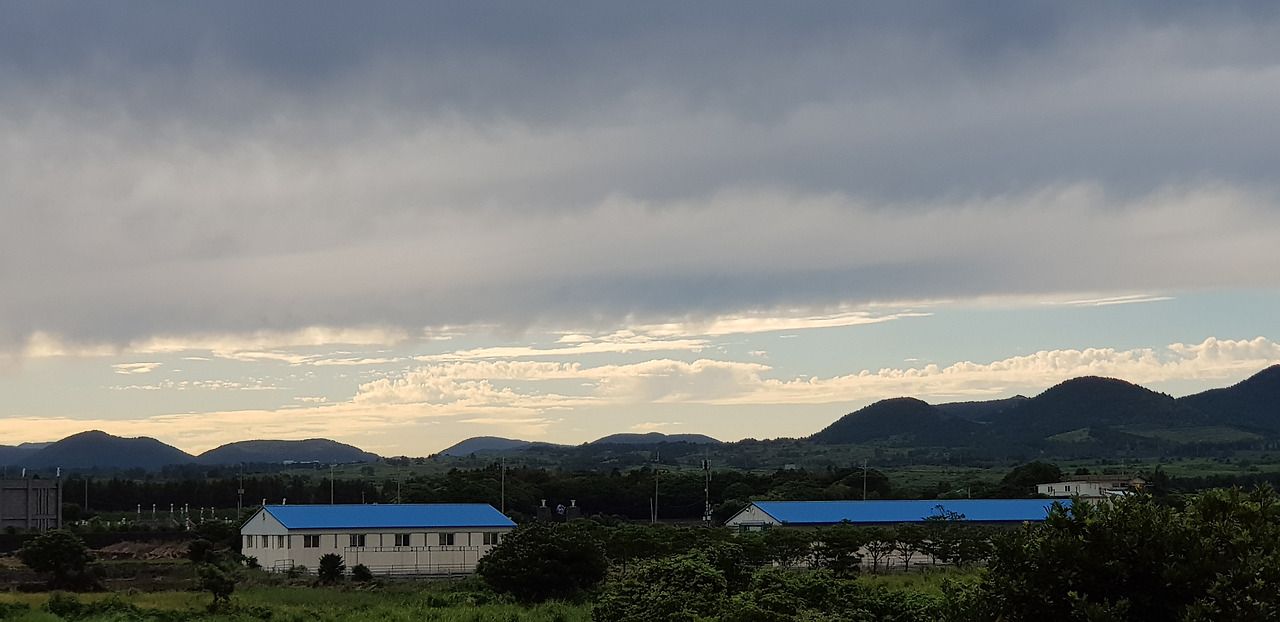 차를 몰며 적당한 주차장소를 찾고 있는데 하늘이 심상치 않다. 분명 저 멀리 제주시 방향으로는 파란 하늘도 보이는데 이곳은 짙은 구름이 잔뜩 인채 분위기가 의미심장하기 이를 때 없다. 이윽고 빗방울을 떨어뜨리기 시작한다. 탐방을 시작도 하지 않았는데 빗방울이 쏟아지면 어쩌란 말인가. 도무지 개운치가 않다.