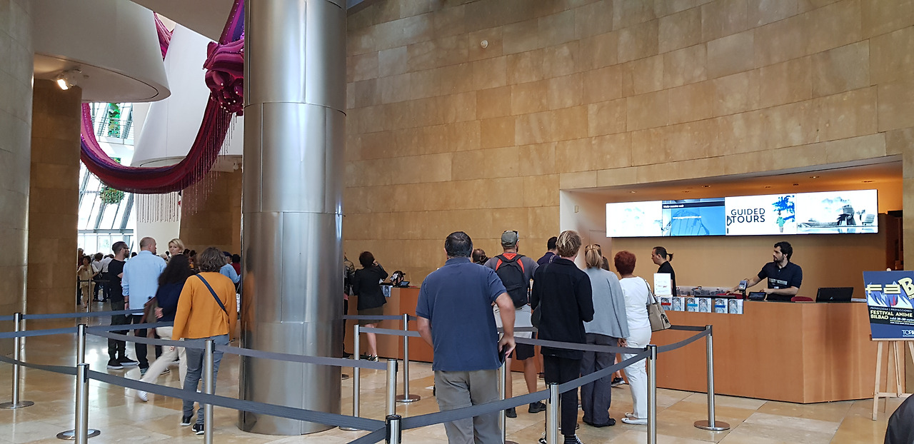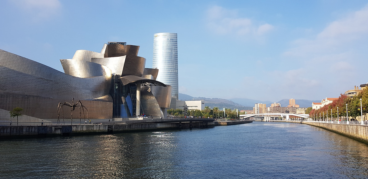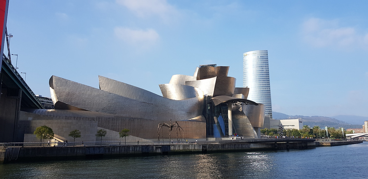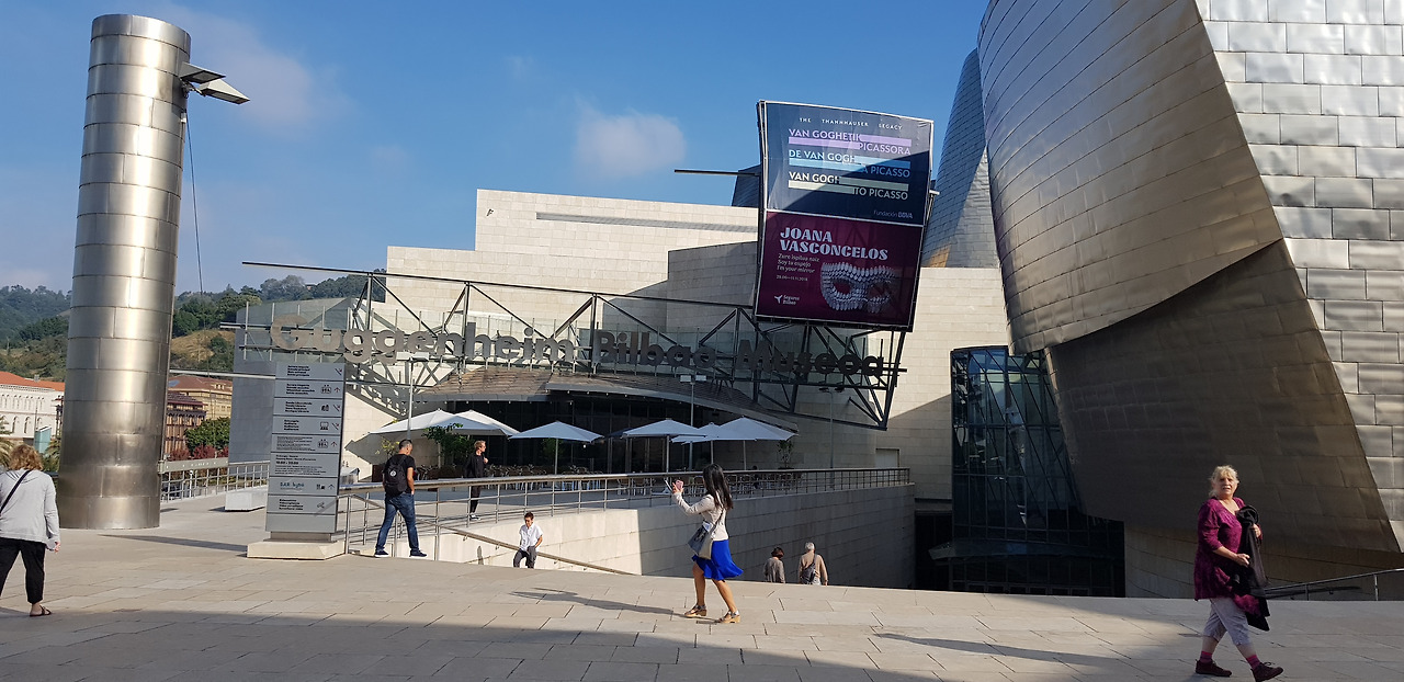 찬란한 빛을 받은 네르비온 강과 그 옆에 군함을 연상케 하는 구겐하임 미술관이 위용을 드러냈다. 3만 3천 장의 티타늄판으로 이루어진 외관이 보이듯 그 판은 빛의 굴절에 따라 다양한 모습과 인상을 자아내고 있었다. 멋지다는 말과 함께 저것만을 보기 위해 이 왜진 스페인 북부를 그토록 많은 사람들이 찾고 있다는 생각에 한 도시를 바꾸어 놓은 중요한 기념비를 목도하고 있다는 점을 실감할 수 있게 된다. 보면 볼 수록 기이하고 멋진 미술관이다. 저런 것이 미술관이라니 더 멋지지 않은가.