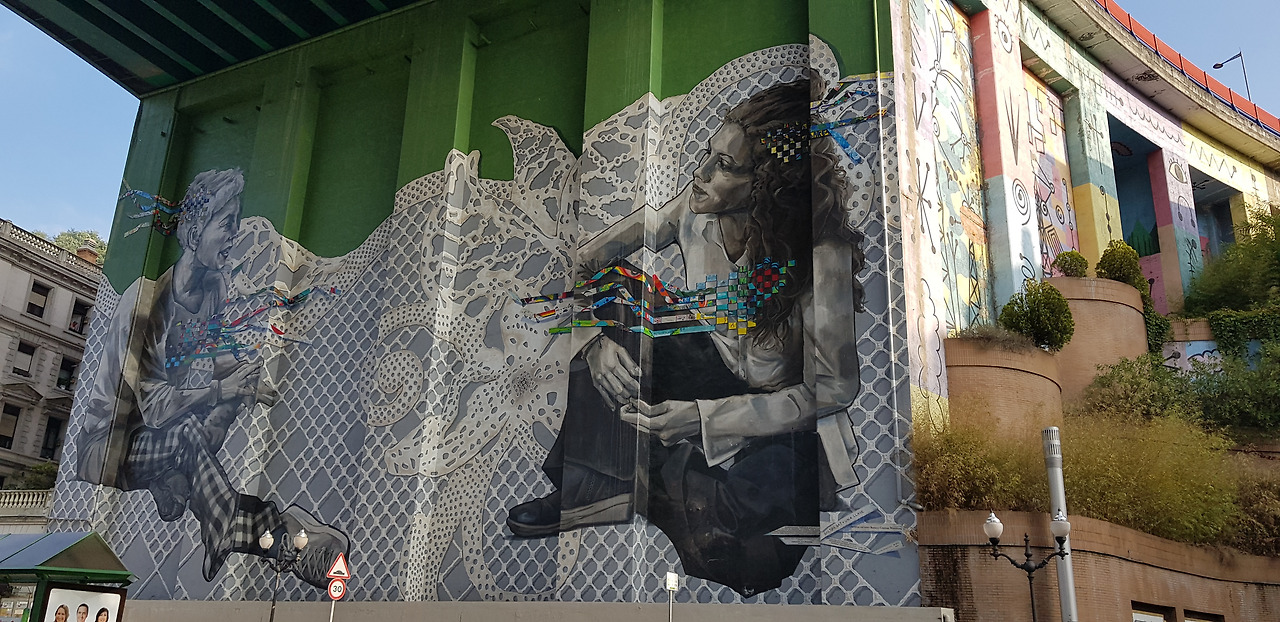 다리 밑의 이 여성들 그림 역시 유명한 그림이라고 하는데 빌바오 뿐 아니라 지역 전체에 거주하는 바스크 여성들의 특징을 잘 나타내는 모습이란다. 대부분 짧은 머리를 하고는 강인하게 살아가는 여성이 바스크 여성들의 특징이라니 왠지 멋지다는 생각과 함께 다른 생각이 함께 떠오른다. 그동안 역사에서 얼마나 많은 풍상을 겪었을 것인가. 여성들이 강인해지지 않았으면 안 되었을 순간들이 함께 반영된 모습인 듯싶다.