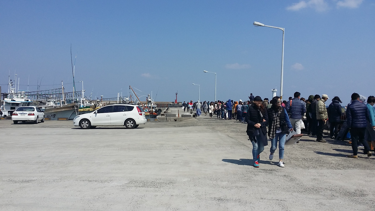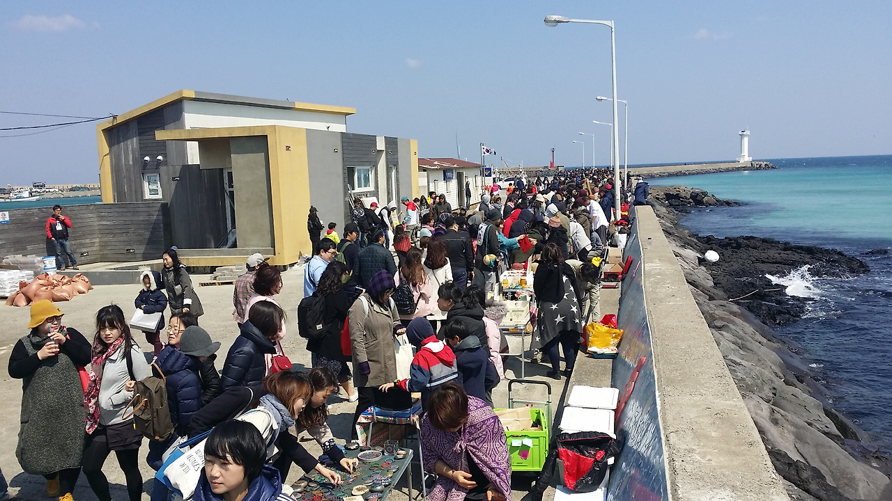 세화의 바람이 영혼의 무게를 시험하는 느낌이다. 이 바람을 오롯이 견디는 사람은 바닷가에 서서 세화 바다와 함께 동화되며 살아갈 것이다. 많은 판매자들이 추위에 몸을 떨면서 자신의 위치를 사수한다. 사람들이 옷깃을 여미며 이 매대 저 매대를 기웃거리며 돌아본다.