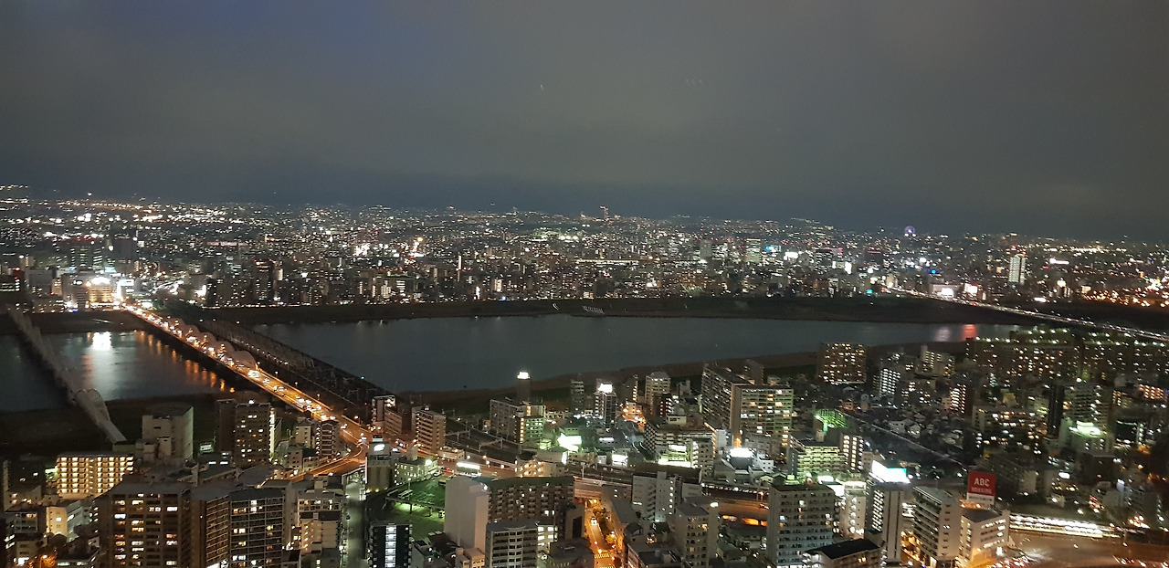 빌딩의 꼭대기에서 바라본 오사카의 야경은 매우 멋지다. 다양한 빌딩의 불빛들이 모여 일본 제2의 도시를 이루고 있으니 화려함으로 가득할 밖에... 관광객 모드로 줄줄이 줄을 서가며 야경을 찍고 가족의 사진을 찍고 있는 나를 보며 관광객 모드가 별다른 생각을 하지 않아도 되니 일견 속이 편하다는 생각이 남는다.