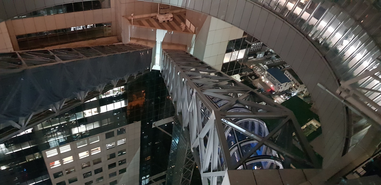 우메다 공중정원 빌딩을 가는 중간은 커다란 공터가 있다. 조만간 굉장히 커다란 건물이나 단지가 들어올 수준의 넓은 공터를 사이에 두고 우메다 및 오사카 역과 공중정원은 한 10분의 거리를 두고 있다.