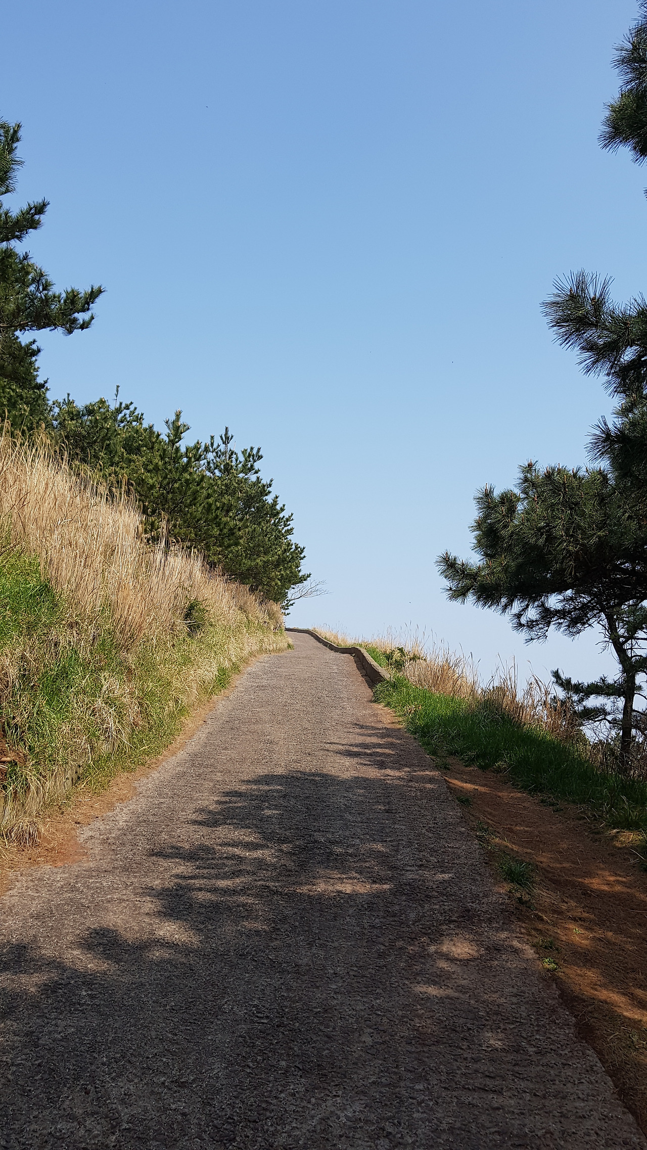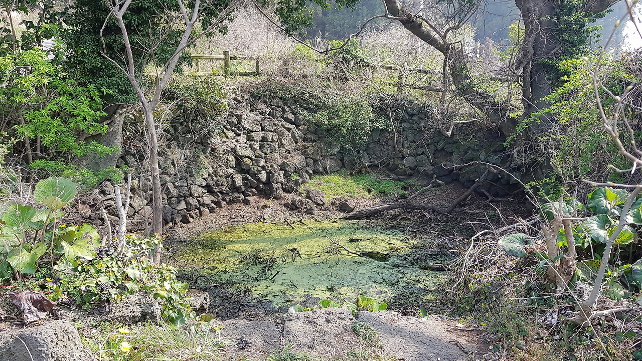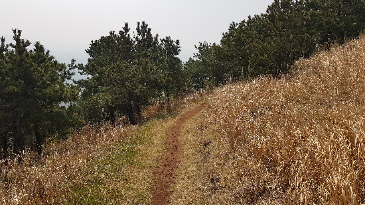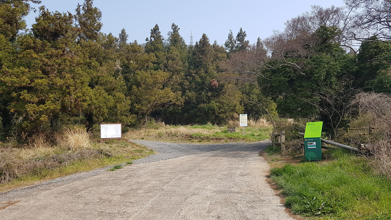 입구에 자리한 생이못과 나무들은 아무리 새들이 먹을 정도의 물이 나온다고 하지만 조금은 아쉬움을 자아낸다. 물이 말라버린 채 푸른색 녹조만 가득하기 때문이다. 힐긋 생이못을 쳐다보고는 제 갈길로 간다. 패러글라이딩으로 유명한 오름인지라 이미 초입부터 시멘트 포장이 잘 되어있다. 오름을 오르는 편안함은 좋을지 모르겠으나 정상까지 시멘트길을 밟고 오르는 기분은 그다지 유쾌하지는 않은 편이다. 중간중간에 패러글라이딩을 하기 위해 사람과 장비를 싣고 나르는 차들이 계속해서 반복 운행을 하다 보니 오름 탐방객들은 중간중간 길을 비켜주는 액션을 취하지 않으면 안 된다. 오르다 보니 흙으로된 사이길이 나온다. 내려올 때는 저리로 내려와야겠다.