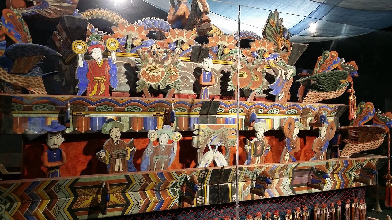 상여에는 온갖 정성이 담겨있다. 꽃상여도 있고 수많은 꼭두도 망자와 함께 세상을 떠난다. 멋진 게 장식되어있는 상여가 상을 치른 후 타 태워 없어져 버렸다는 사실은 매우 슬프면서도 일견 이해가 되는 대목이다. 그래서인가 어느 마을에나 공동으로 사용했다는 상여가 남아있는 곳이 거의 없단다.
