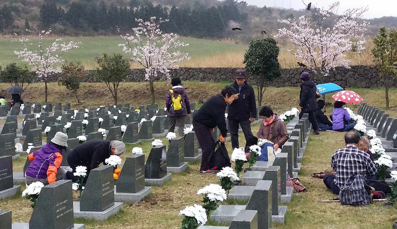 평상시에 바라보는 4.3 평화공원은 숙연하기는 해도 역사적인 사실에 더 가깝다. 반면 추념식장의 4.3은 제주의 현실이 된다. 수많은 사람들이 이름을 찾아 꽃을 놓고 술을 올린다. 앉아 흐느끼는 할망도 보게 되고 비석을 쓰다듬는 분들도 본다.