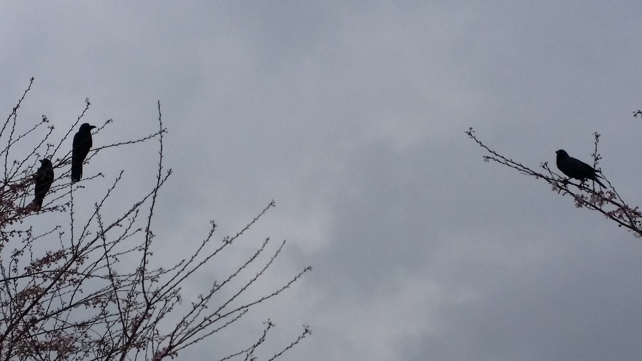 평화공원이 지대가 높아서이겠지만 벚꽃에 앉은 까마귀들은 참 묘한 분위기의 장면을 연출한다. 예부터 동아시아의 까마귀는 영의 메신저 역할을 한다고 생각했다. 그렇다면 올해도 수많은 영령이 저 까마귀들을 통해 가족들을 보고 있겠구나 싶어 자꾸 눈길이 간다.