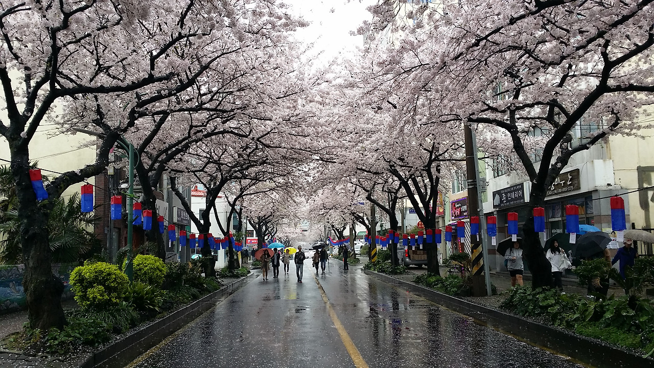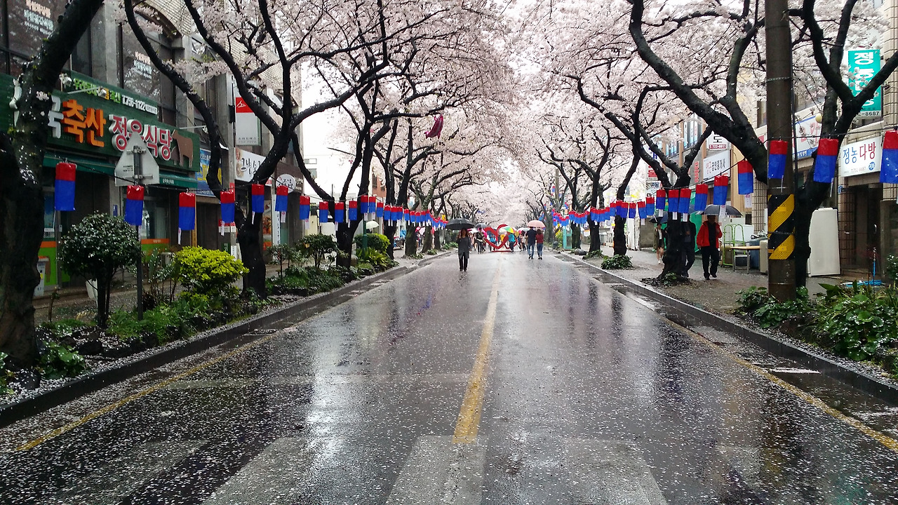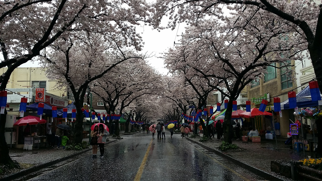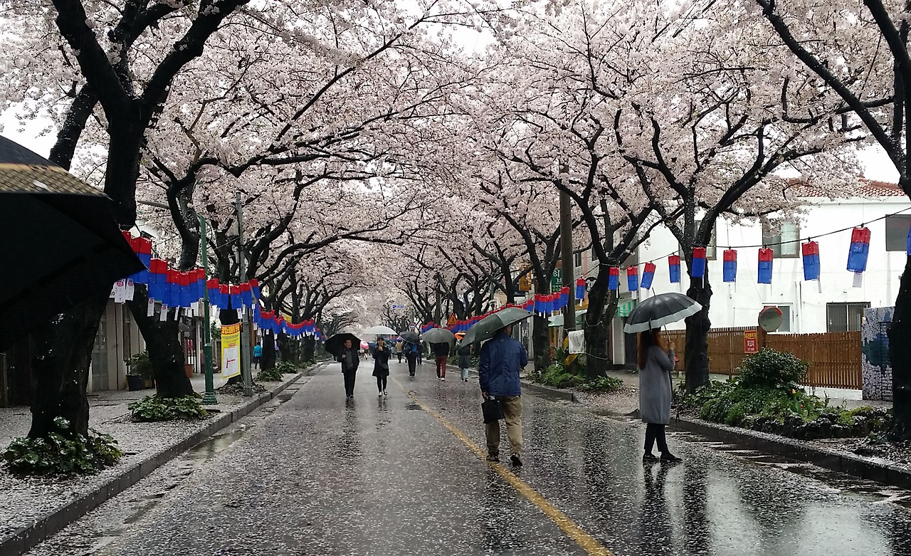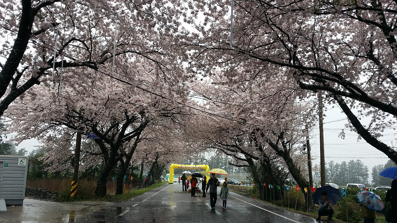 주말에 벚꽃축제를 열고 있는 와중에 비가 내리니 관계자들은 울상일 것이 분명하다.