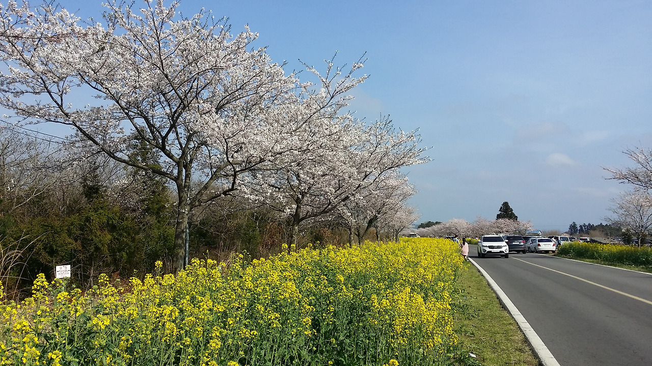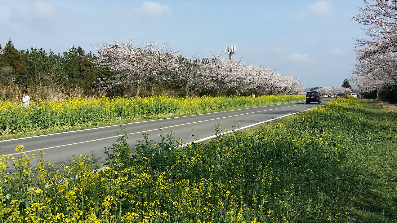 제주의 봄을 알리는 대표적인 꽃인 유채꽃도 좋은데 그 유채꽃이 벚꽃과 함께 피어있는 장면을 보기란 쉽지 않은 기회이자 감동적인 순간이다. 6km 가까이 되는 길을 서다 가다 수없이 같은 풍경을 보여주는데 지겨울 수도 있겠을 거리지만 그 말 대신 경이롭다는 탄성이 먼저 나온다.