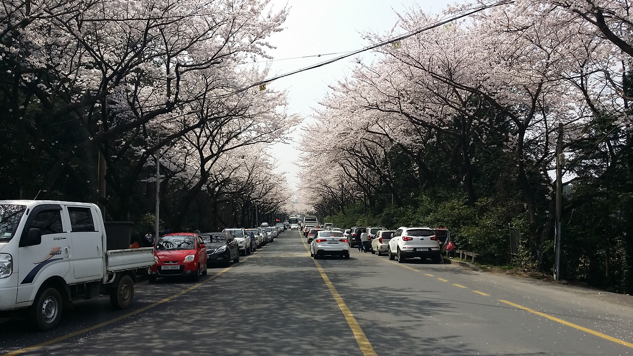 왕복 4차선에 갓길에 보도까지 합치면 꽤나 넓은 길에서 벚꽃의 향취에 취해볼 수 있는 거리다.