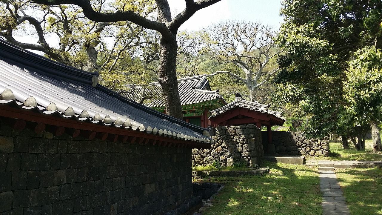 살며시 열린 낮은 문으로 일단 몸을 들이밀고 본다. 의외로 정겹고 고즈넉하다. 옛적에 이곳에 앉아 공부를 하면 공부는 잘 되었듯 하지만 이 먼 고장에서 유교식 공부를 한다한들 과연 중앙무대에 벼슬을 할 수 있는 길이 있기는 한 것일까. 선뜻 이해가 가지 않는다. 추사 같은 양반이 이곳에 유배를 왔다. 그것은 이미 최고의 죄인에게 내리는 형벌이다. 이 먼 곳에서 자력으로 공부해 과거 급제로 벼슬을 한다는 것이 가능키나 한 일일까 싶다. 괜히 이곳 향교가 결국 이 지역을 통치하는 이데올로기의 양산지로구나 하는 생각이 먼저 든다. 그럼에도 장소 하나만은 나무랄 데 없이 좋다. 제주도를 삼분하는 행정지였던 대정현의 또 다른 중심지 역할을 했을 터이다.