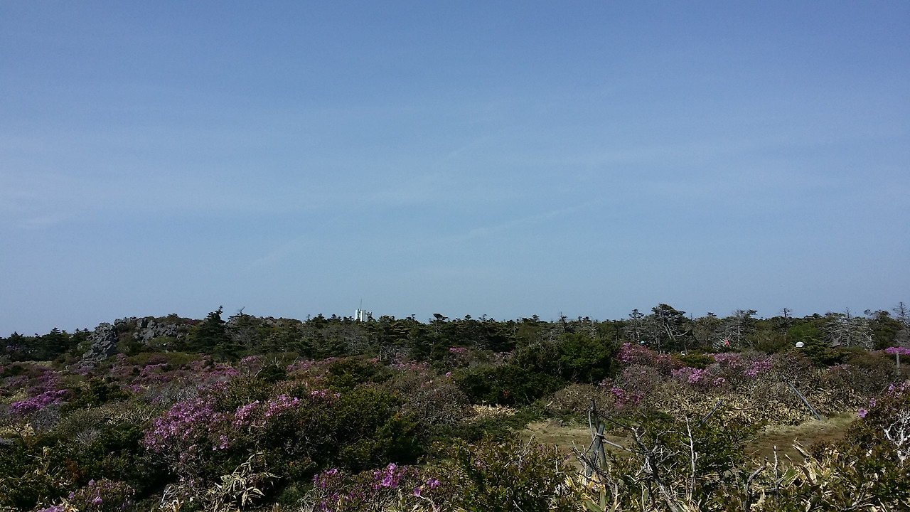 숨 가쁜 오름의 시간이 끝나려 하는 시점이 되면 새로운 볼거리를 준비한다. 간간히 계곡의 바위 사이에 핀 진달래를 감상하는 사이 색다른 풍경을 전해준다. 구상나무 숲이다. 살아있는 구상나무와 고사목이 한데 어울린 이 구상나무밭은 참 묘한 기분이다. 삶과 죽음이 엉켜있지만 결코 그 둘이 다르지 않다는 점을 이야기하려는 것일까. 삶이란 시작과 끝이 있는 명확한 기준이 아니라 여전히 또 다른 시작이라는 점을 알려주고 있을 뿐이다.