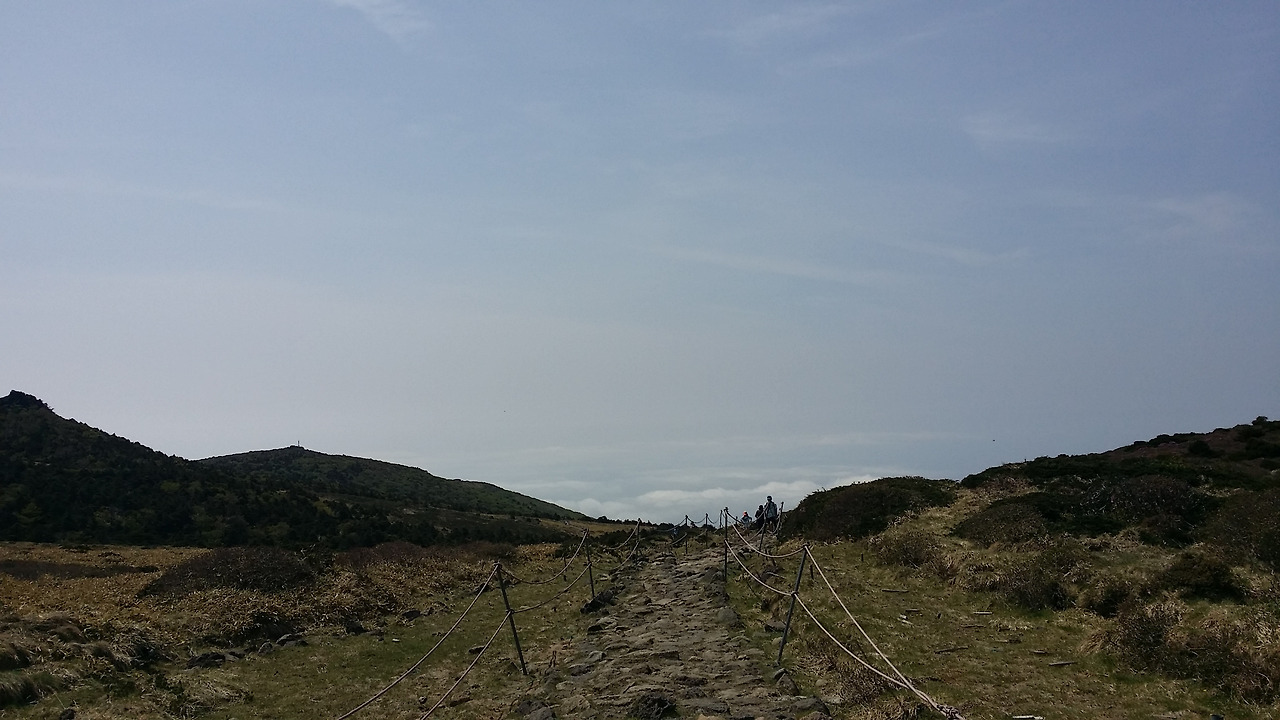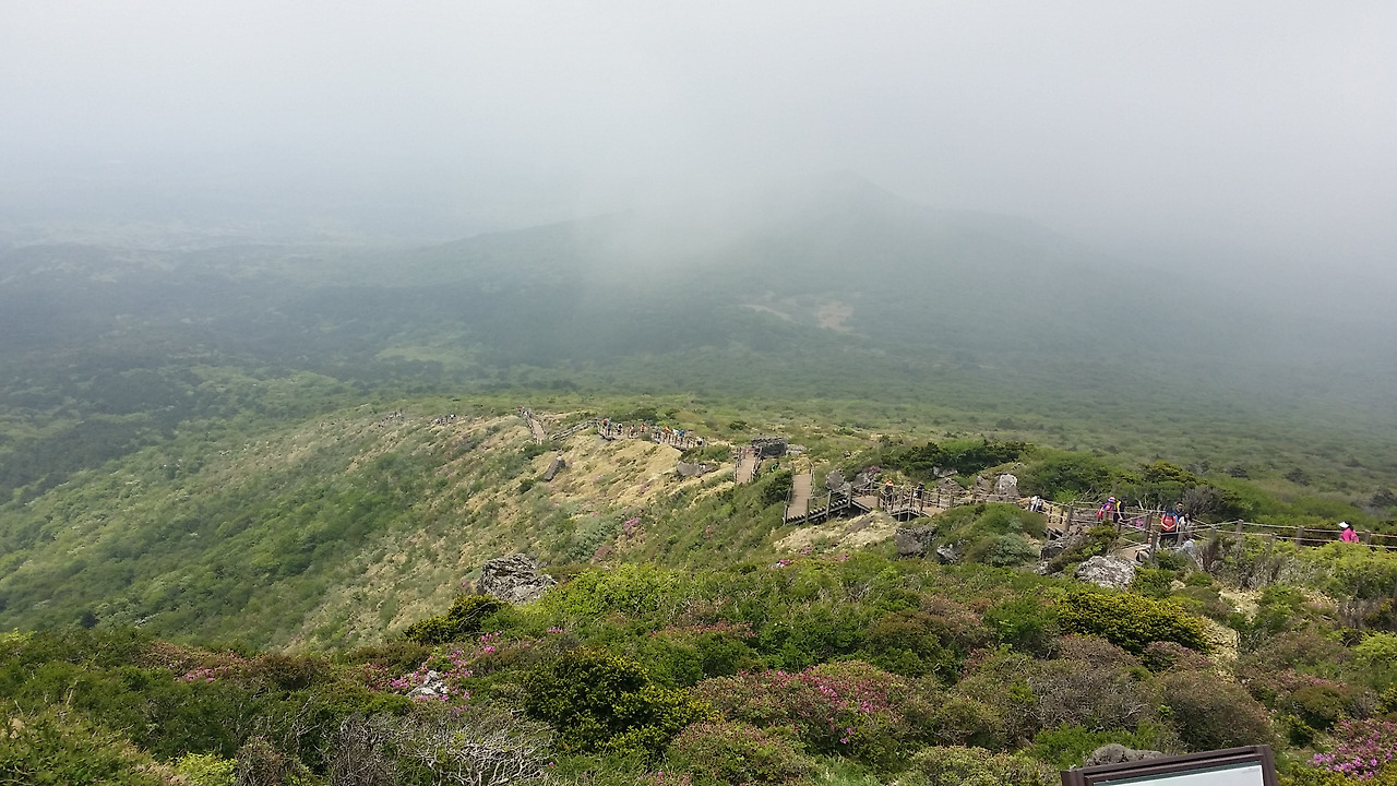 내려오는 길 하늘이 갑자기 입장을 바꿔버렸다. 맑은 하늘과 따가운 햇볕을 보여주려던 애초의 마음을 바꾸었는지 온통 구름으로 산을 가득 채웠다. 이곳에 있는 사람들을 가두기라도 할 모양이다. 그러다 잠시 잠깐 보여주는 빛 사이로 얼마나 많은 등산객들이 영실기암을 오르고 있는지 보여준다.