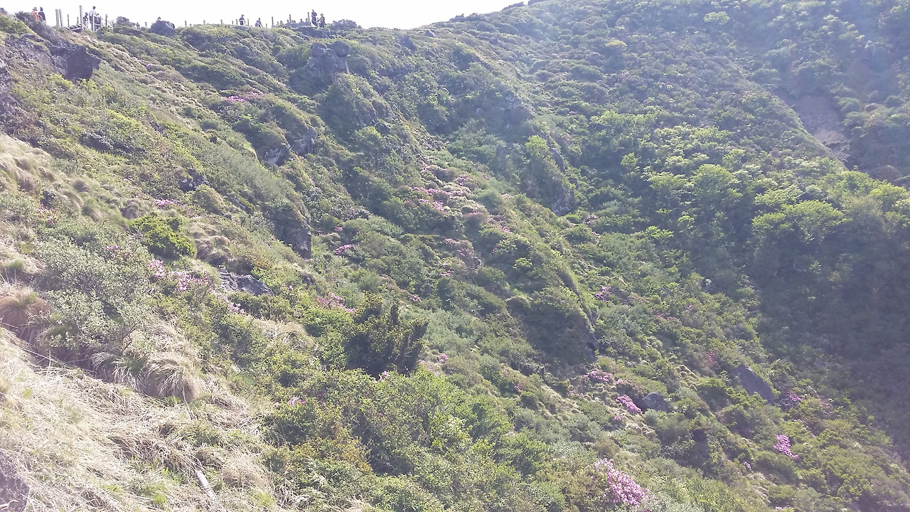 그동안 못 가본 윗세오름에서 남쪽 바위벽까지 조금 더 가보기로 했다. 한라산 백록담 봉우리를 좀 더 가까이서 보고픈 욕심이랄까... 넓게 연결된 통로를 지나 길을 들어서자 멀리 있는 백록담이 점점 눈앞에 다가온다. 이러다간 끝이 없겠다 싶어 어느 자리에서건 뒤돌아서기를 결심한다. 그곳에서 길이 넘어가는 자리와 지나는 사람들에 대한 아쉬움을 남기고는 온 길을 되돌아 온다.