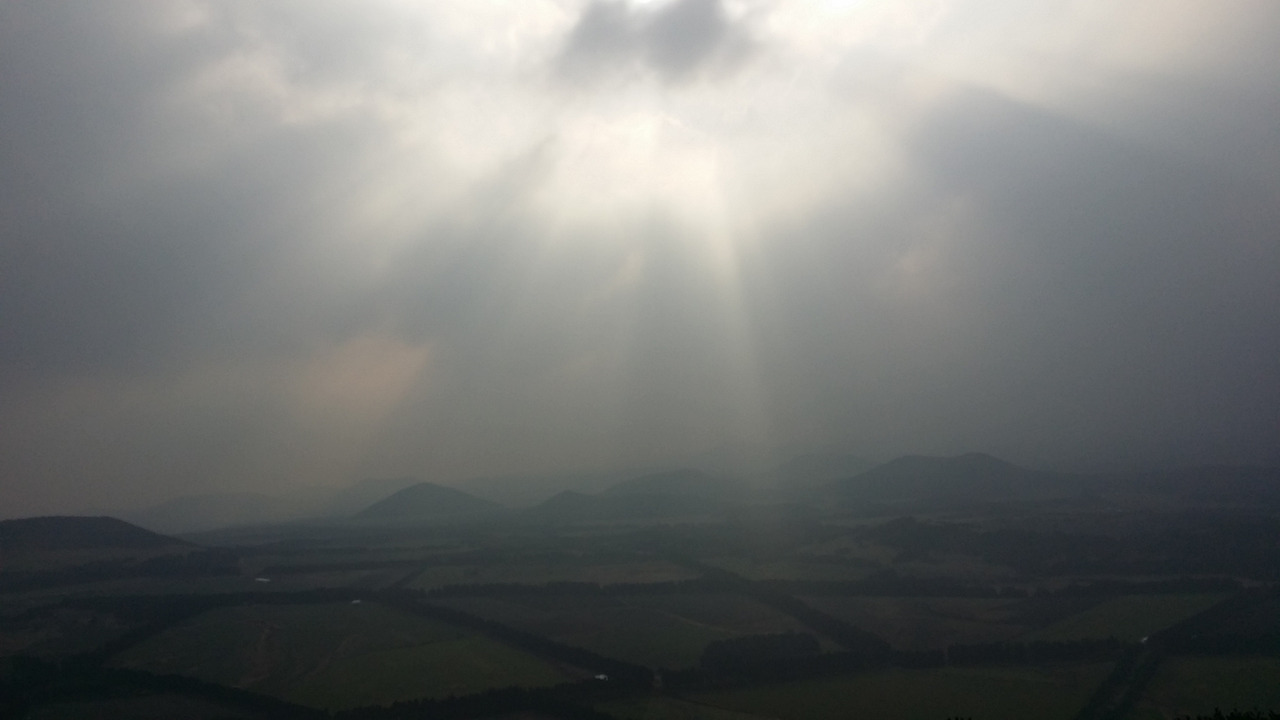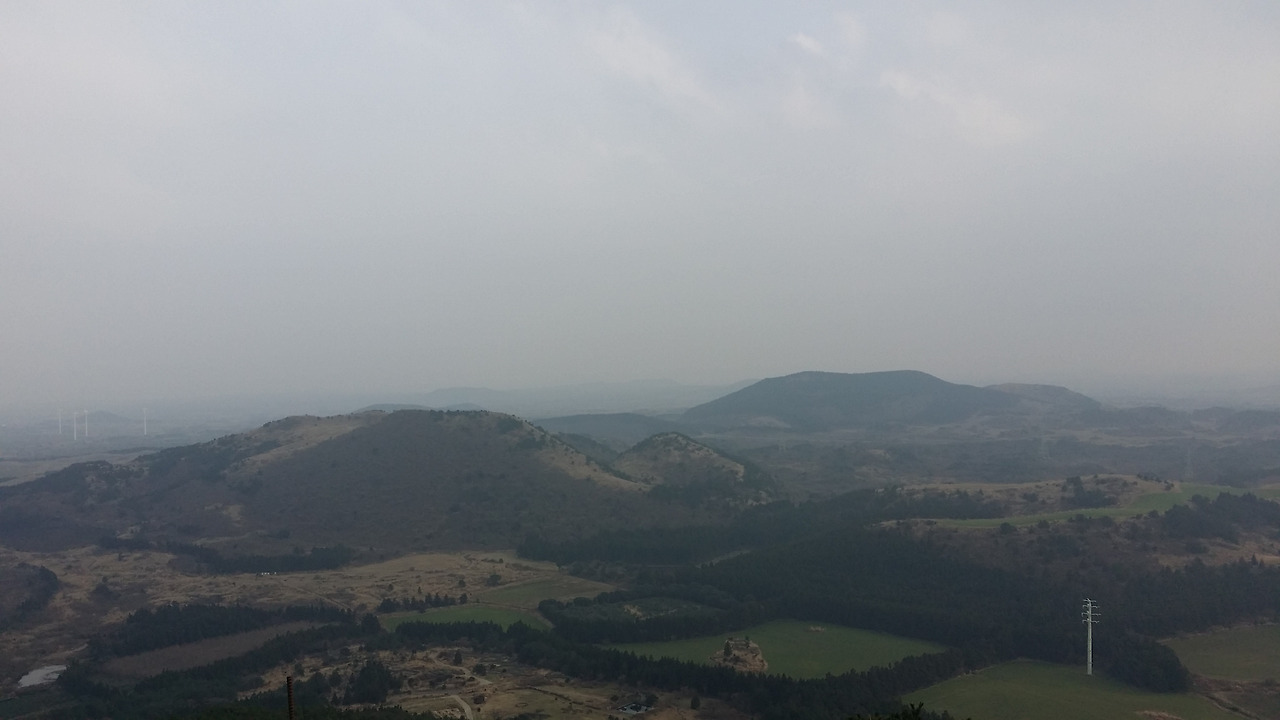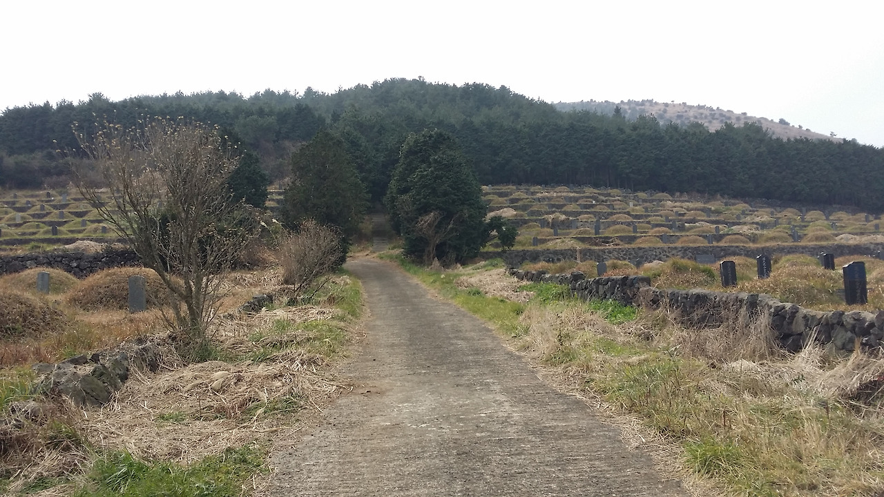 중간에 산소가 몇 기 공원묘지 위쪽으로 보인다. 이분들은 공원묘지 산소들보다 훨씬 이전의 묘지 들일 것이다. 제주의 묘지들은 산꼭대기에 모시는 경우가 많다. 노꼬메오름 정상 부근에 있던 산소를 보고 놀란적이 있다. 자식들이 이곳까지 오르려면 땀꽤나 뺄 것이다. 그럼에도 모든 오름의 정산 부근에 산소가 있는 것을 보면 명당에 대한 집착은 그 어떤 땀방울보다 더 강하다.