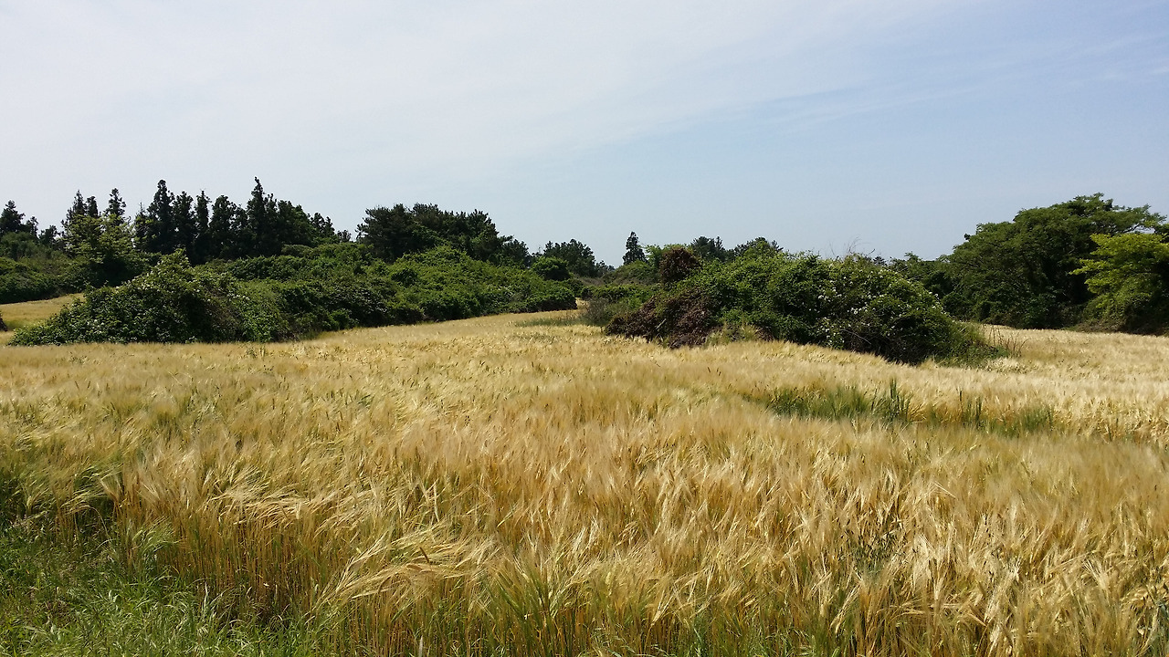 여기가 어디쯤 인지도 모르게 지나는 길에 눈을 확 띄게 하는 장면들이 나타난다. 3월 말에 왔으면 여기도 장난이 아니겠는데 싶다. 청보리가 이미 다 익어 5월의 황금들판을 제공하고 있다. 아,,, 보리밭의 황금들판도 이런 느낌이 드는구나. 한 군데서 마음을 주고 다음으로 발길을 옮기면 곧이어 또다시 보리밭이 내 시선을 사로잡는다. 가을의 뙤약볕에서 보이는 황금들판이나 추석과는 전혀 다른 5월의 황금들판은 어딘지 모르게 낯설면서도 나만의 비밀을 제공해 주는 신비로운 느낌을 준다. 지금 나 아니면 누가 이 기분을 알랴...