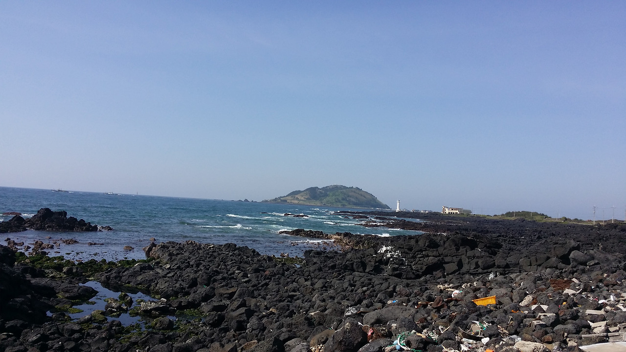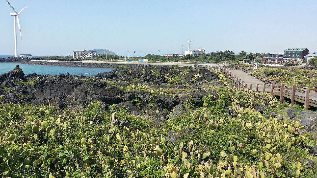 월령리의 선인장 자생지를 지나 자그마한 포구로 들어섰다. 뜬금없는 벼룩시장스러운 좌판이 몇 개 보인다. 이들의 정체는 뭐지... 카페와 아이를 몇 명이 그 앞에서 놀고 있고 좌판을 벌여놓은 여성들 몇몇이 도란도란 이야기만 나누고 있다. 그도 그럴 것이 그 길을 지나갈 사람들이 없을 터인데 아무것도 아닌 물건들 몇 개를 펼쳐놓고는 벼룩시장처럼 앉아있다. 가서 말 걸기도 낯선 느낌이 들어 아무 생각 없이 그 자리를 지나쳤다. 이 포구를 지나면 계속되는 바닷길이 이어질 것이고 비양도가 눈앞에 펼쳐질 것이다. 그때까지는 계속 걷기만 할 뿐이다.