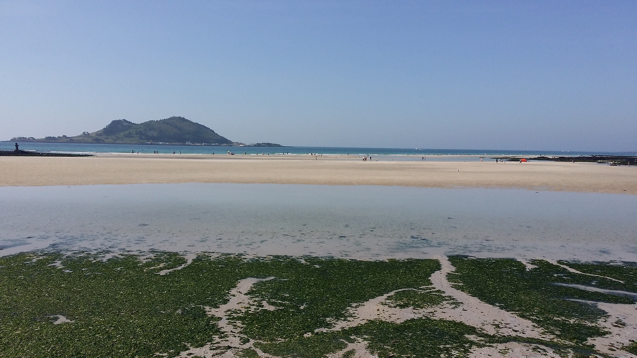 해초가 바다를 메웠다. 괭생이모자반인가. 포구의 구석구석까지 해조류가 가득가득 밀려들고 있다. 그 사이를 비집고 해변으로 물놀이를 하려는 사람들이 하나둘씩 모이고 있다. 아, 저 먼 바다의 깨끗함이 푸르름으로 가득 차니 그 푸르름이 기쁘지 않다. 해초 사이의 바다가 나를 부른다. 나도 얼른 저곳으로 가고 싶다. 금능해변과 협재해변이 코앞이다. 해변이다. 모래가 밟히는 해변이다. 길을 걸을 이유가 없다. 성큼성큼 해변을 걷는다. 혼자 걷는 게 아쉽다. 누군가는 여기에 있어야 한다.