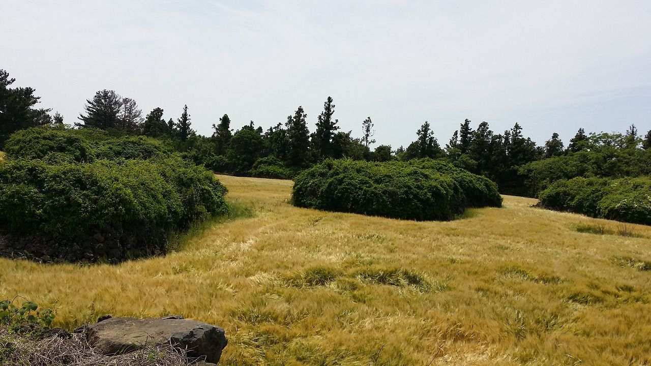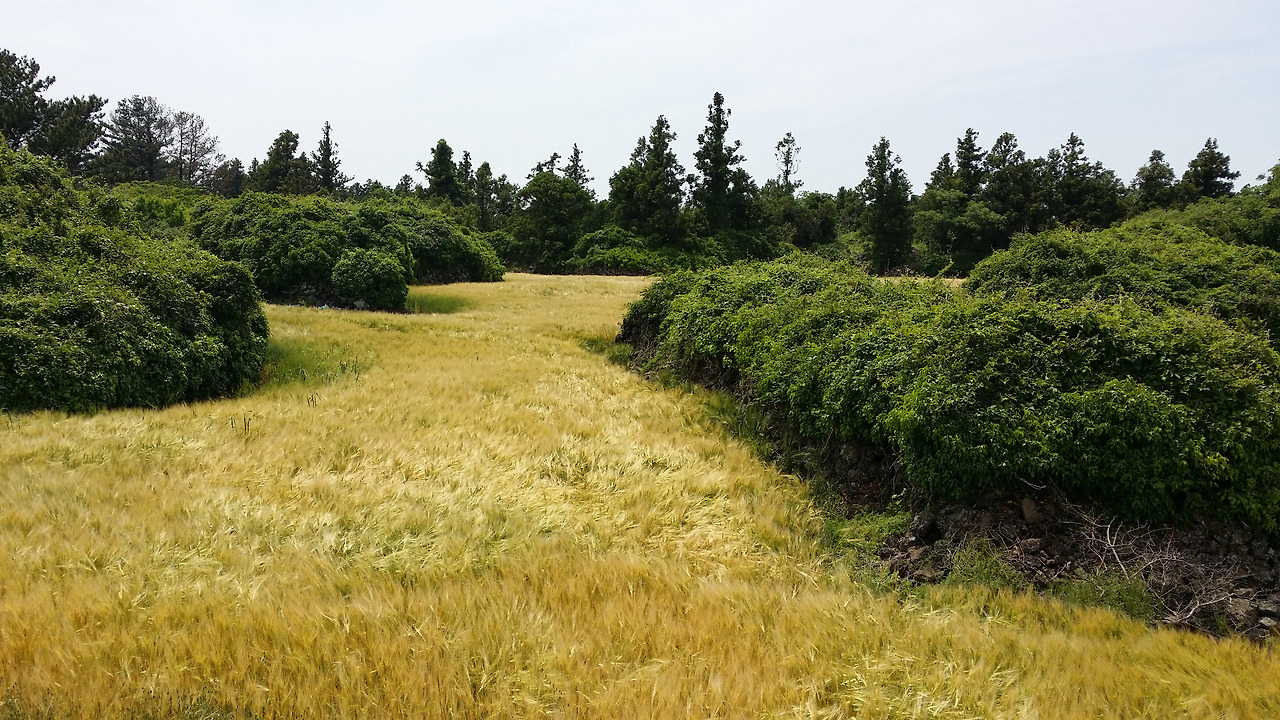 아주 보기 드문 경험이다. 마치 저 녀석들 사이에 곧 풀로 은폐한 누군가가 뚜껑을 열고 머리를 쑥 하니 내보낼 것 같은 기분이다. 아마도 아직은 감성의 끈을 놓고 있지 않았다는 대견스러운 안도감이 다가온다. 이 길 재미있다. 특히 이 바위가 있는 자리는 보리밭 사이를 스치고 움직이는 바위라는 생각과 환상이 닫히지를 않는다.