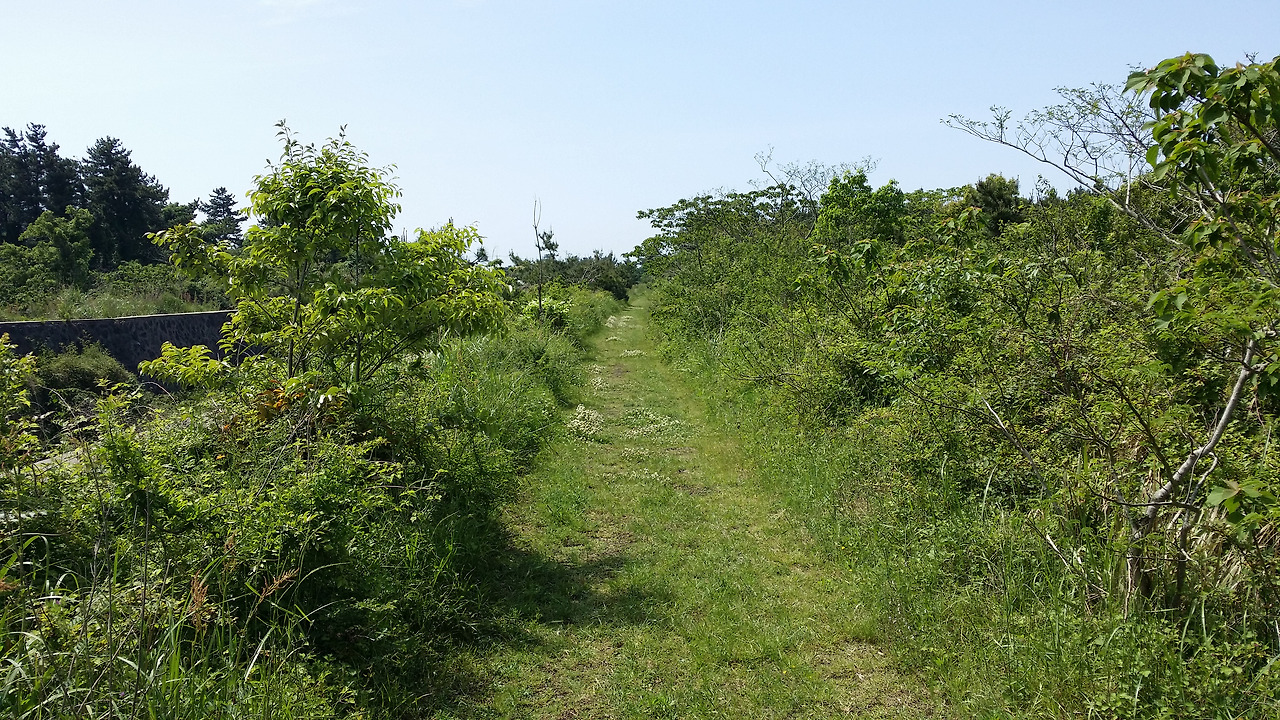 수로 옆을 걷는 호젓한 풀밭 길 느낌이 계속 이어져 있다. 설마... 했는데 이 길은 이후로 계속해서 수로를 가운데 두고 좌우를 건너게 하더니 바다로 향하게 한다. 헉, 이런 더 이상의 변화가 없다는 게 놀랍다. 한쪽이 호젓한 길이면 반대편은 시멘트 포장길이다. 번갈아가면서 이렇게 되어 있는 것은 이유가 있을 것이다.